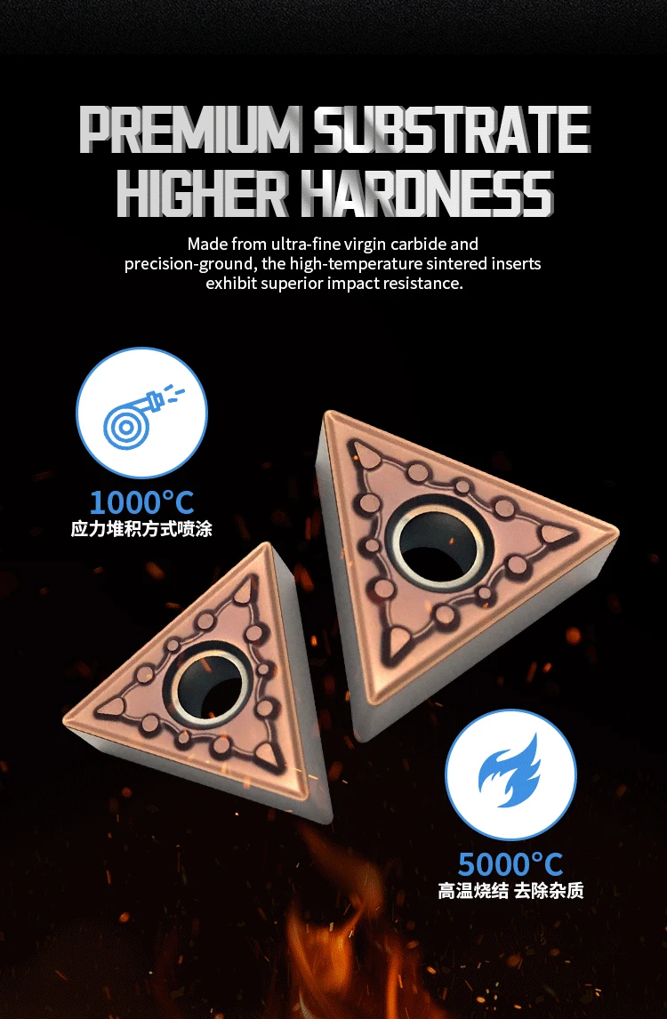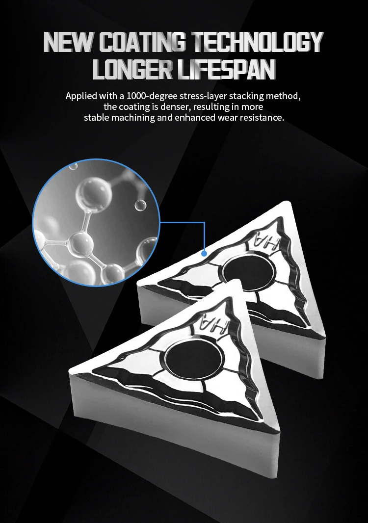 Este inserto combina una construcción duradera de carburo de tungsteno con un sustrato de grano fino, brindando resultados de corte confiables para metales no ferrosos, aluminio y tareas de carpintería. Su revestimiento PVD/CVD y su alta resistencia al desgaste lo convierten en una opción práctica para operaciones de torno CNC eficientes y consistentes.