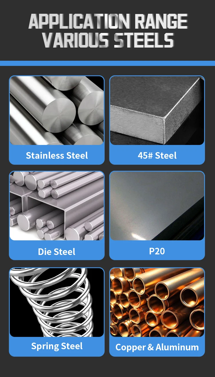 Amplia compatibilidad de materiales: Diseñado para materiales tipo P, M, K, con adaptabilidad específica a metales no ferrosos, aluminio y escenarios de carpintería.