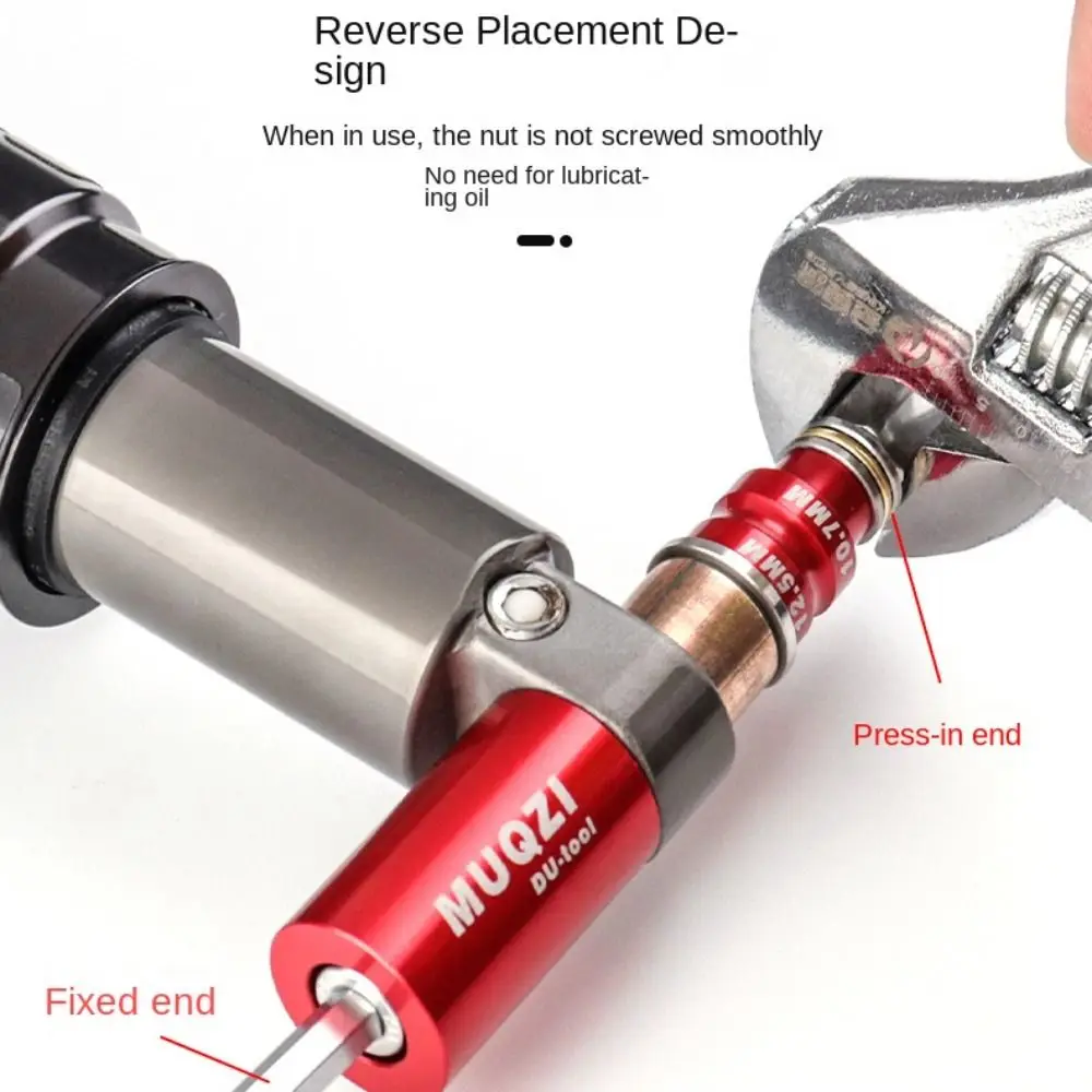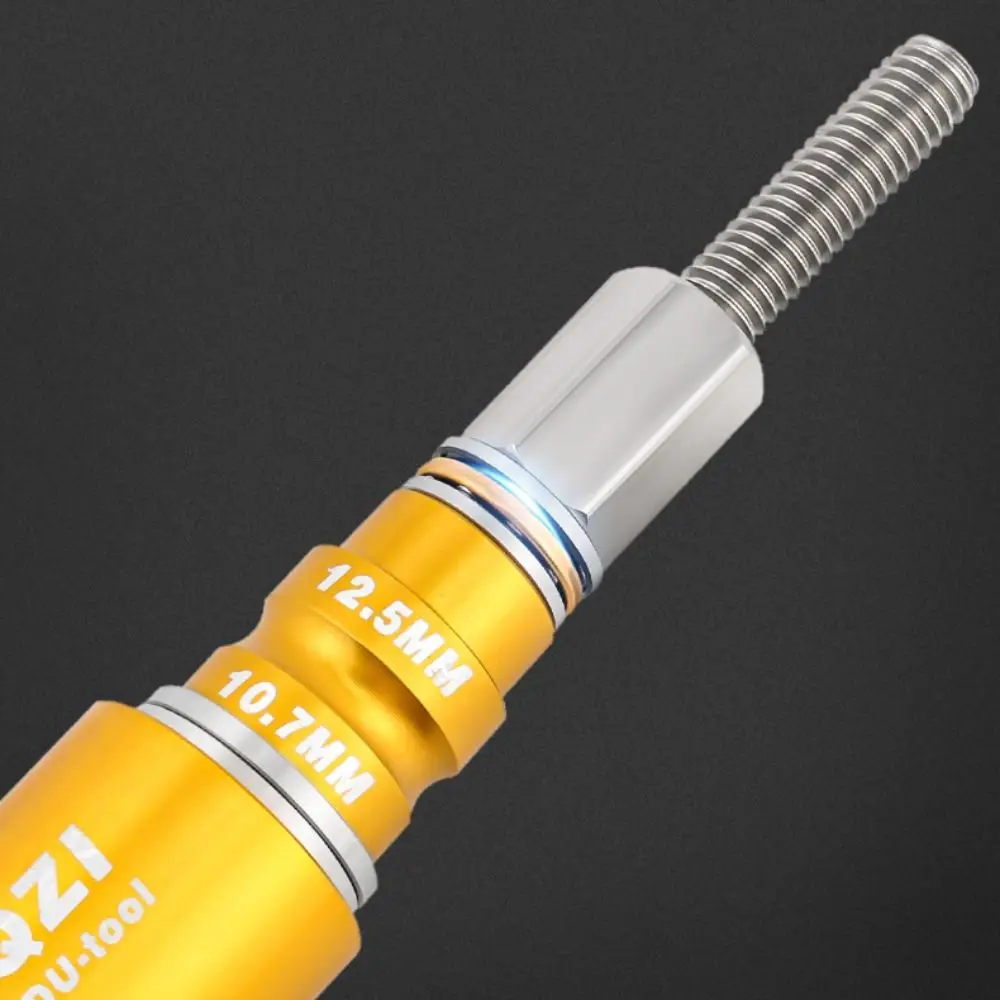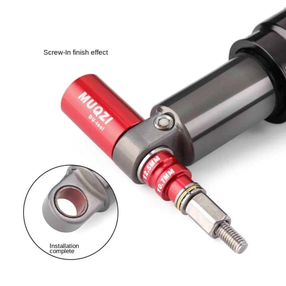 This shock-absorbing bushing tool is used to install or remove the rear shock-absorbing eyelet bushing within the inner diameter of 11-12.7MM(0.43-0.50in). It is simple and convenient to use and does not damage the rear shock absorber. It adopts the reverse press-in design, which is easier to install and remove. Don't worry about the problem of screw stuck.