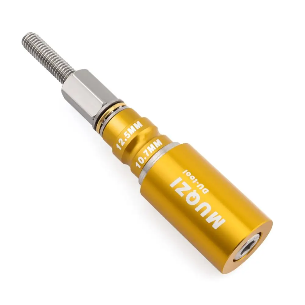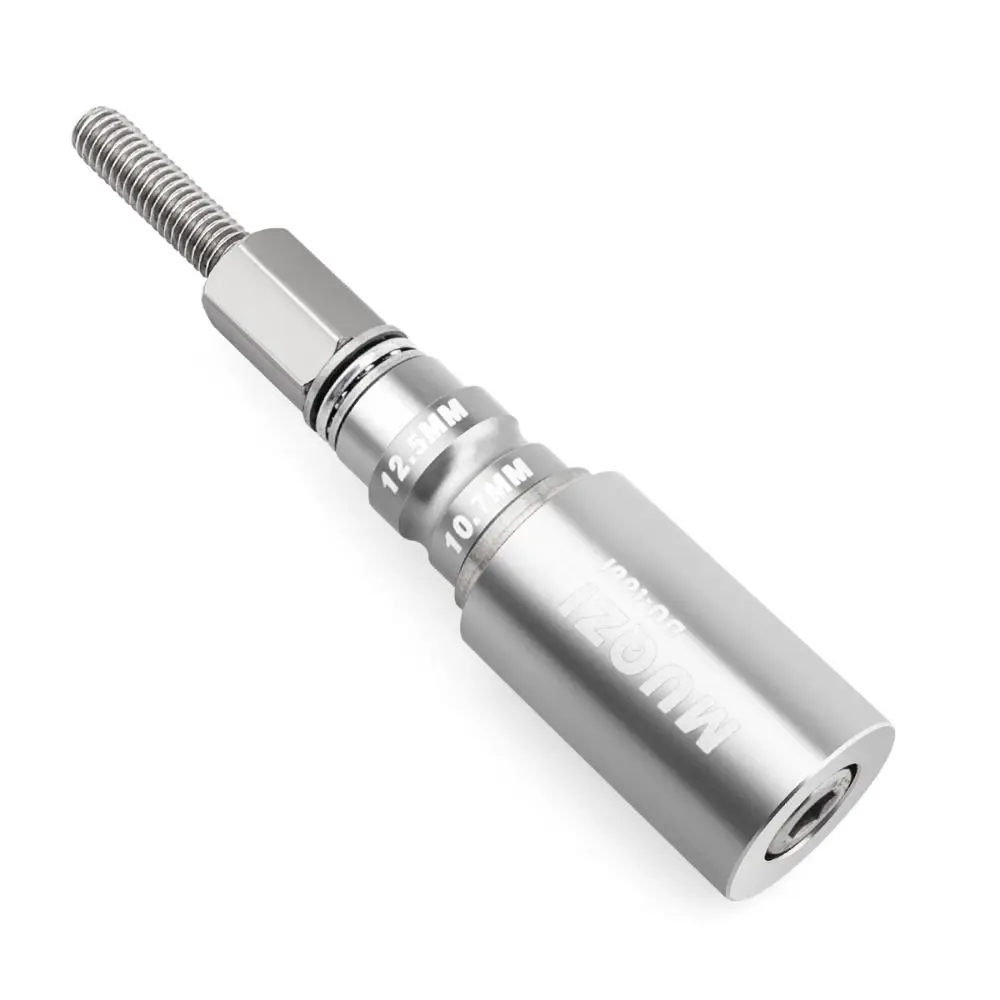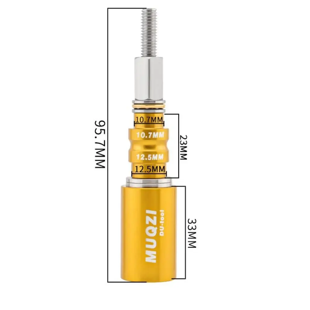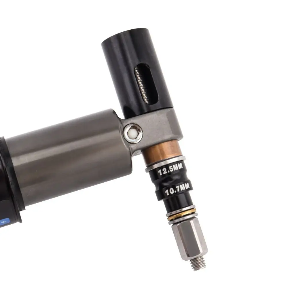This shock-absorbing bushing tool is used to install or remove the rear shock-absorbing eyelet bushing within the inner diameter of 11-12.7MM(0.43-0.50in). It is simple and convenient to use and does not damage the rear shock absorber. It adopts the reverse press-in design, which is easier to install and remove. Don't worry about the problem of screw stuck.