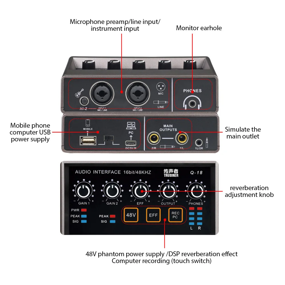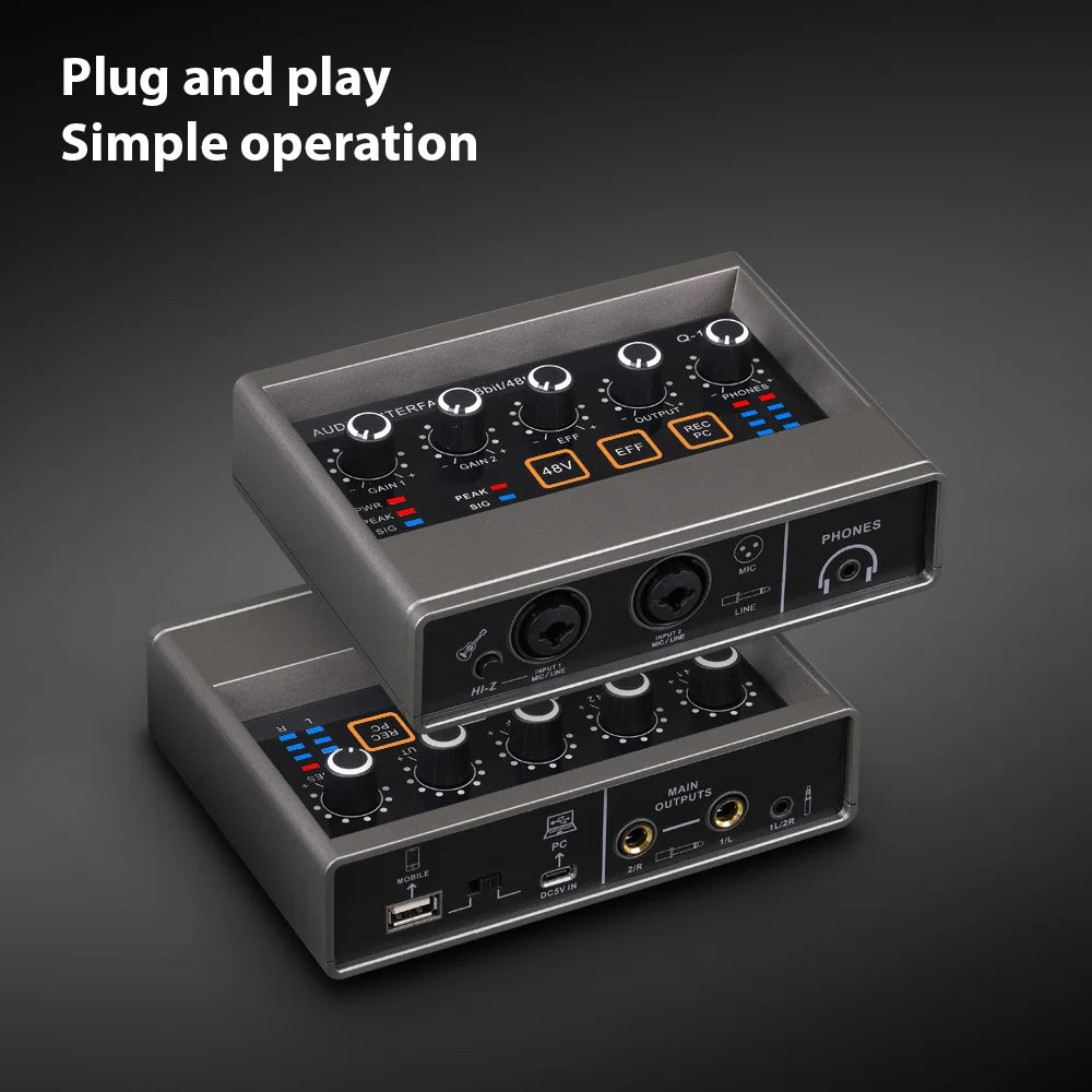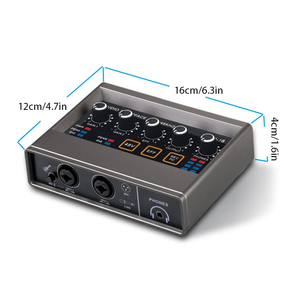 【Interfaz de audio profesional】: Esta interfaz de audio cuenta con un efecto de reverberación profesional incorporado, que proporciona un sonido de alta calidad para sus grabaciones. Es perfecto para grabar música, karaoke en línea, grabación de voz y más.