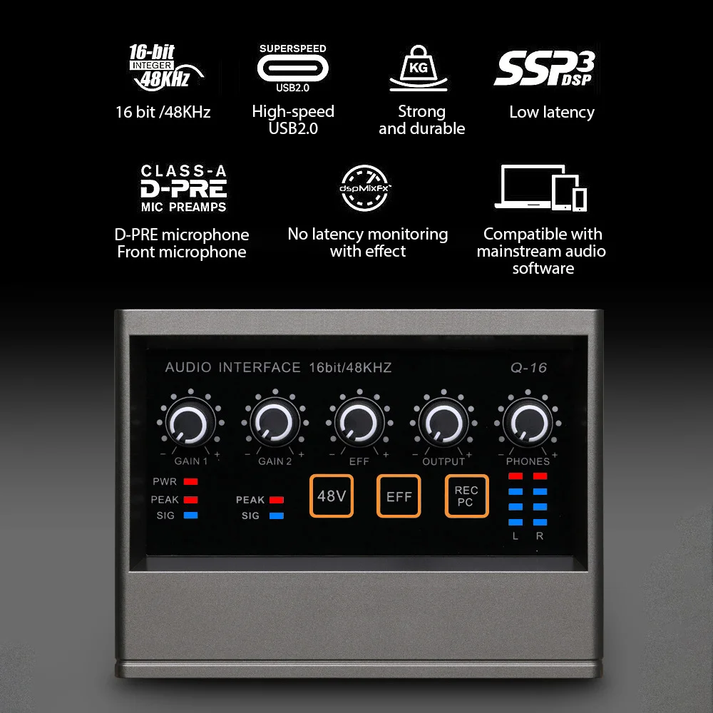 【Alta RESOLUCIÓN DE audio】: con una resolución de audio de 16 bits/48kHz, esta interfaz de audio garantiza una reproducción de sonido clara y detallada. Captura cada matiz de su rendimiento, ofreciendo una calidad de audio de nivel profesional.