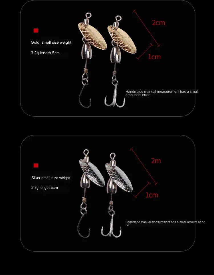 Isca artificial de lentejuelas giratorias de acero de tungsteno, cuchara compuesta giratoria, cebo duro, accesorios de aparejos de pesca, 4,8g/5,5 cm, 1-2 piezas por lote