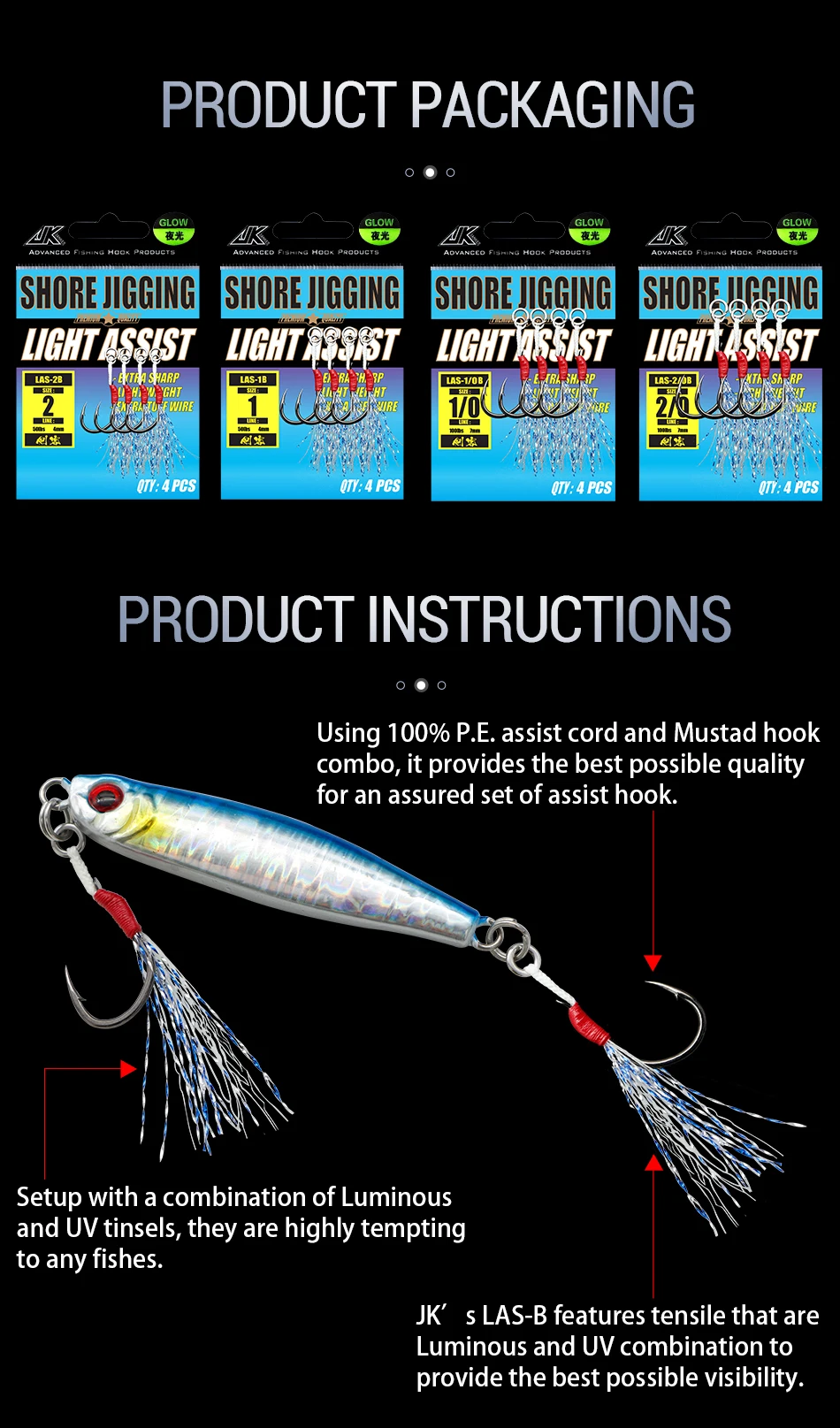 Iseama-Juego de anzuelos luminosos de acero al carbono para pesca, accesorios de anzuelos ligeros japoneses, JK LAS-B