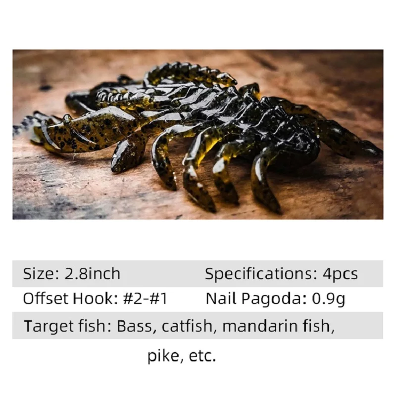 ISSEI DANNY 2.8 pulgadas 4 unids/pack 5,5g señuelo de araña hundido cebo suave para sin pecado/texas ligero/cabeza de plantilla