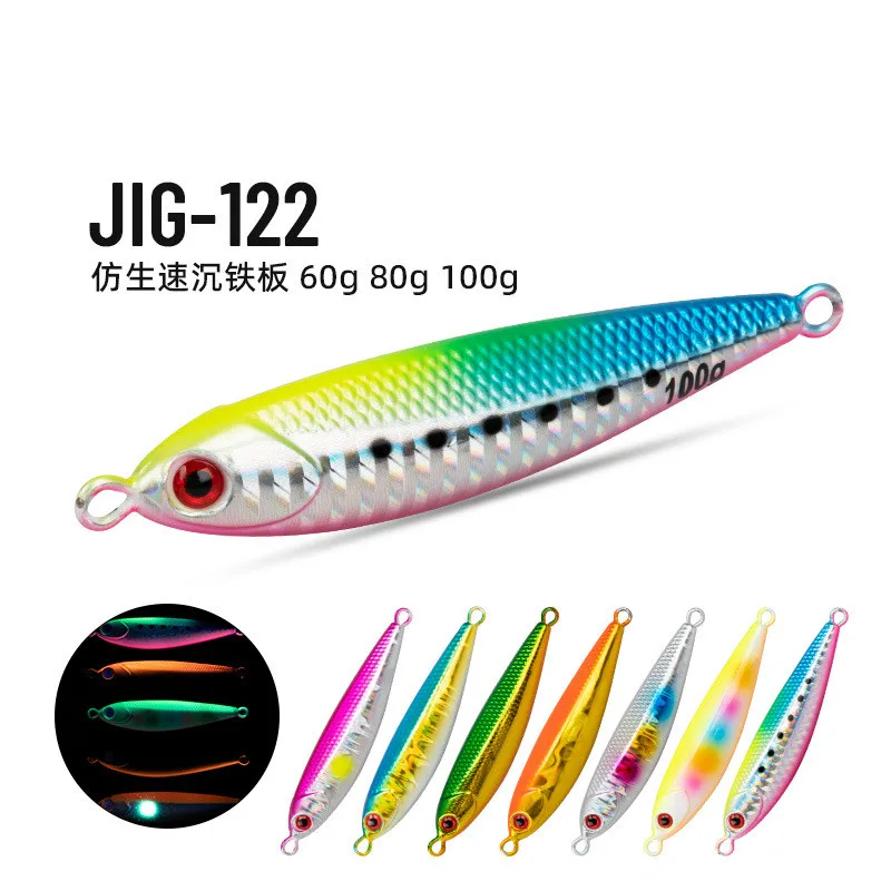 J122 60g 80g 100g Micro plantillas de Metal hundimiento lento Jifgging de Metal señuelo de pesca fuera de la costa Micro Jig cuchara UV brillo anzuelo