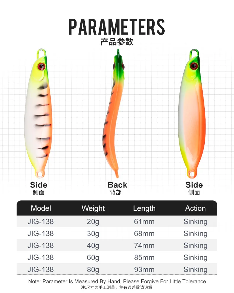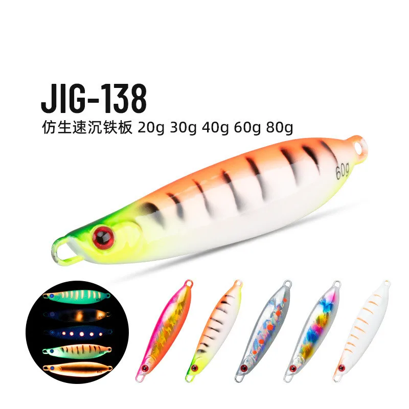 J138 20g 30g 40g 60g 80g pesca de fundición larga señuelo de Jigging de Metal forma dura luminosa Jigbait señuelo de Jigging de agua salada