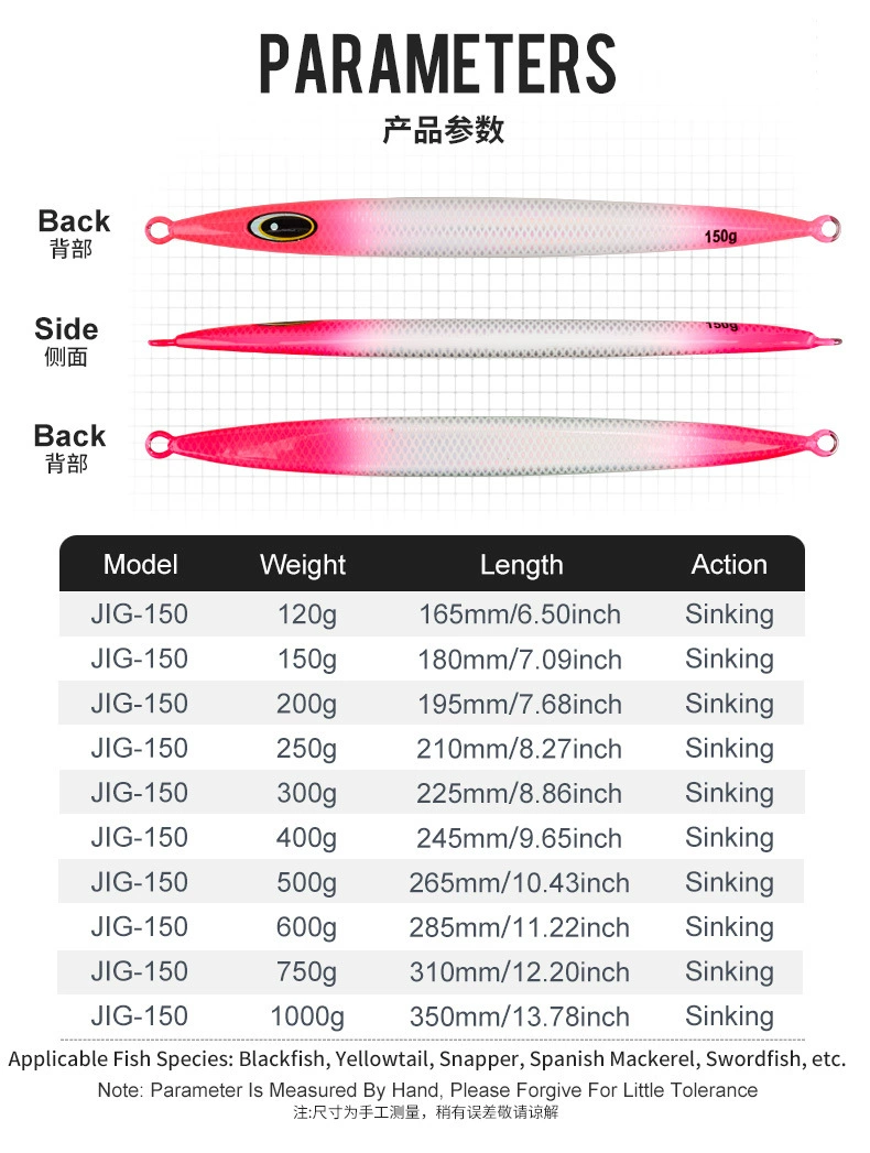 J150 120g 150g 200g 250g 300g pesca en barco de mar plantillas de Metal cebo caída rápida hundimiento duro Jigging señuelo brillo Metal Jigbait