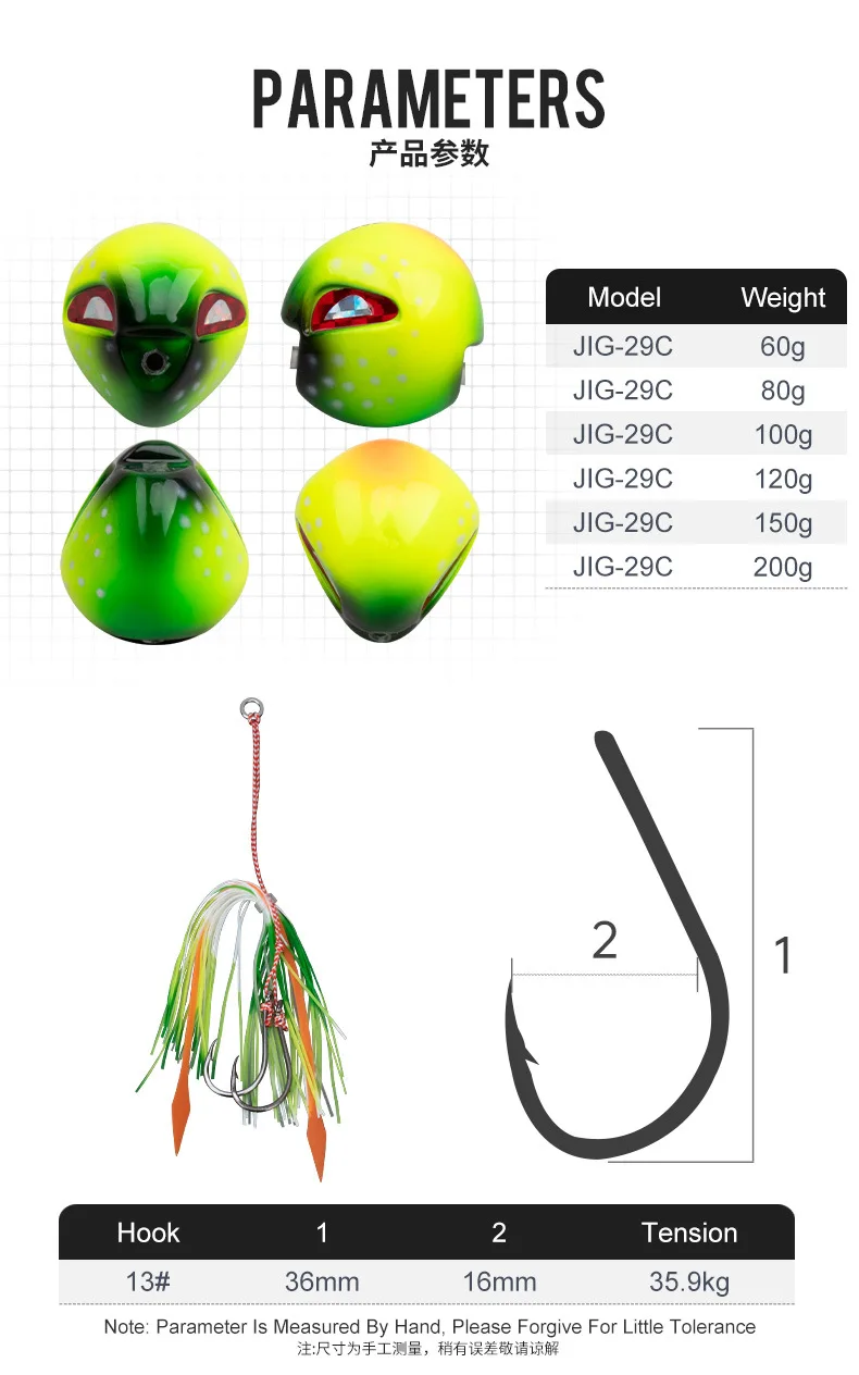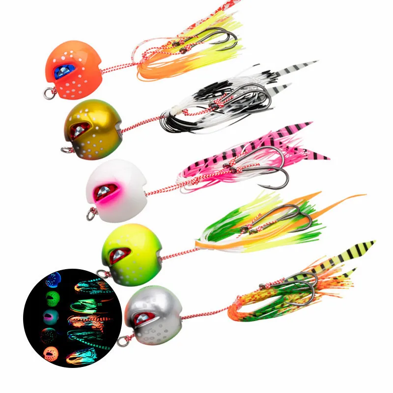 J29 200g/150g/120g/100g/80g/60g Glow Lumious Kabura Pesca Slider Snapper/mar Bream Jig head con falda señuelo de jigging barco inchiku