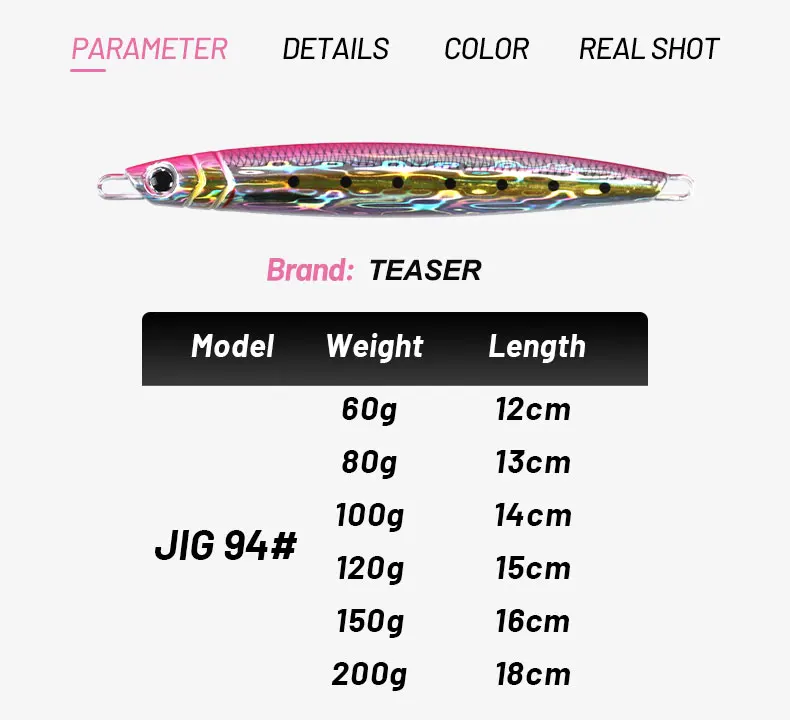 TEASER 100g 120g 150g 200g Majorcraft Jigpara Impresión 3D Láser brillante Láser largo fregadero rápido Jigging Vertical Señuelo de pesca de mar en agua salada
