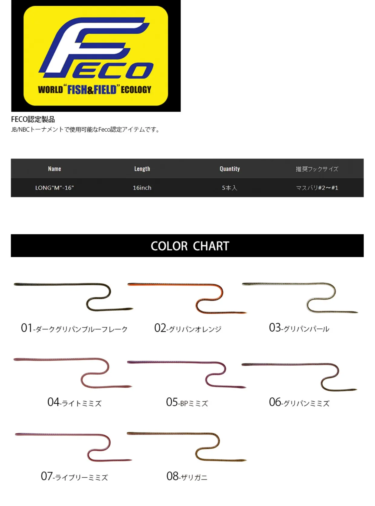 JACKALL-Conjunto de pesca Neko sin plomo, cebo subsuave de carretera, gusano de fideos súper largo, "M" -16 pulgadas, Japón