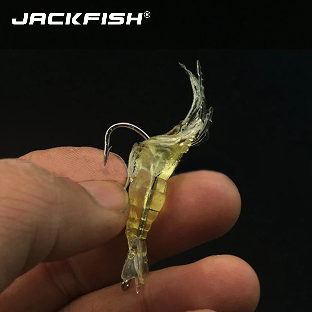 JACKFISH-señuelo Artificial suave para pesca, cebo de Camarón con gancho, aparejos de pesca, 10 unids/lote, 4cm