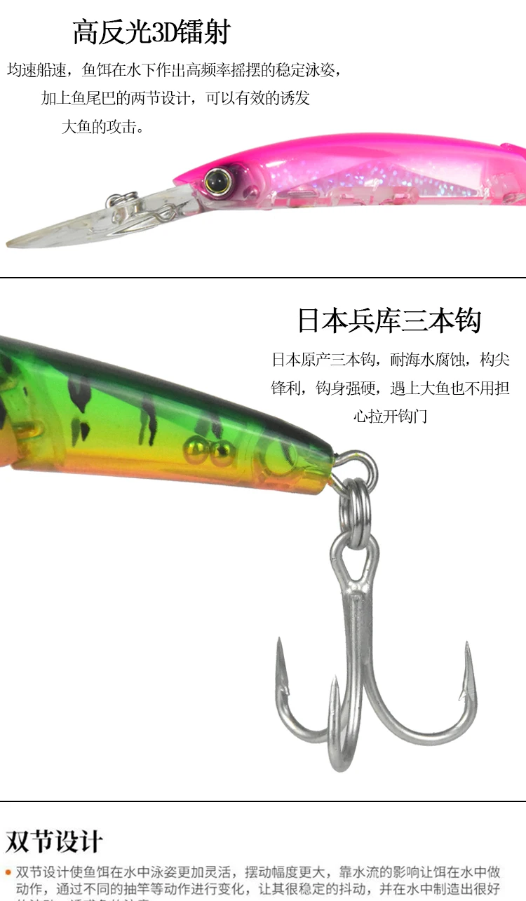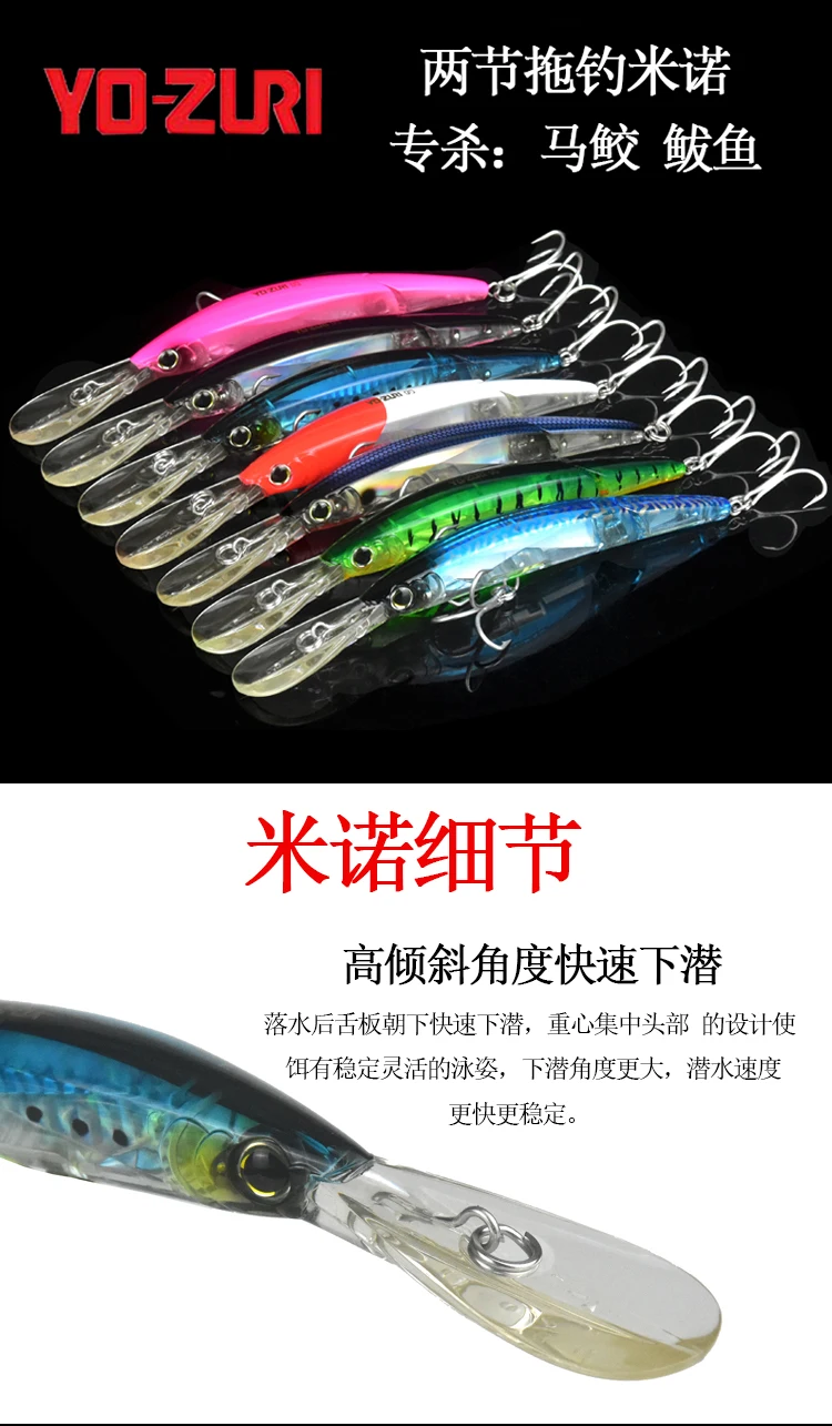 JAPANESE YO-ZURI DE DOS SECTION TROLLING BAIT FALO BAIT 13 CM PROFESTO DE DIVE 4 METROS TROLLING 3D BAIT TOBBY DE TUBIÓN
