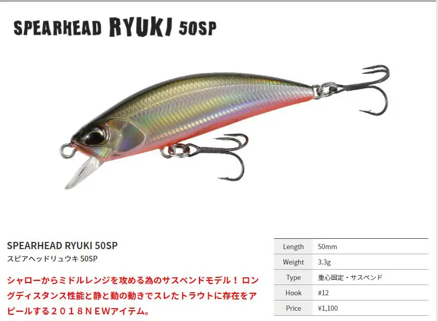 Japón DUO SPEARHEAD RYUKI 50SP, 3,3g, microorganismo suspendido, Mino Stream boca cebo