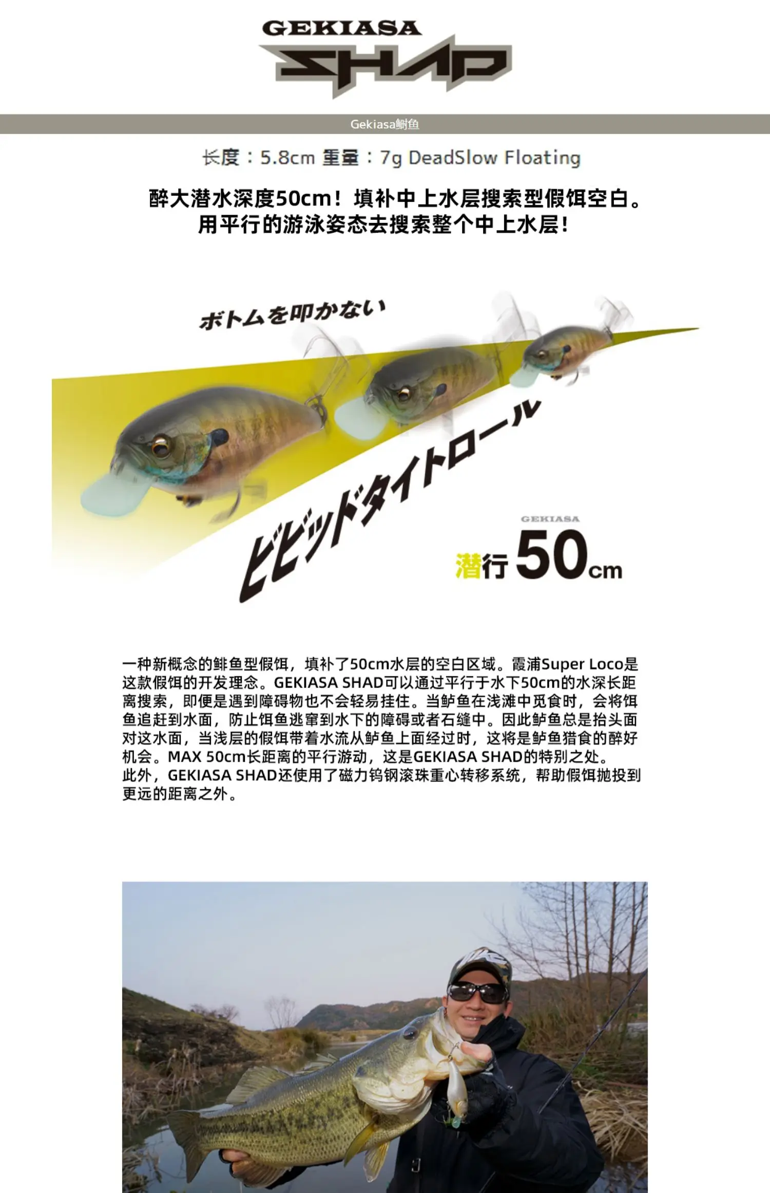 Japón IMAKATSU nuevo cebo poco profundo Luya SHAD GEKIASA SHAD cebo de perca de largo alcance 7g