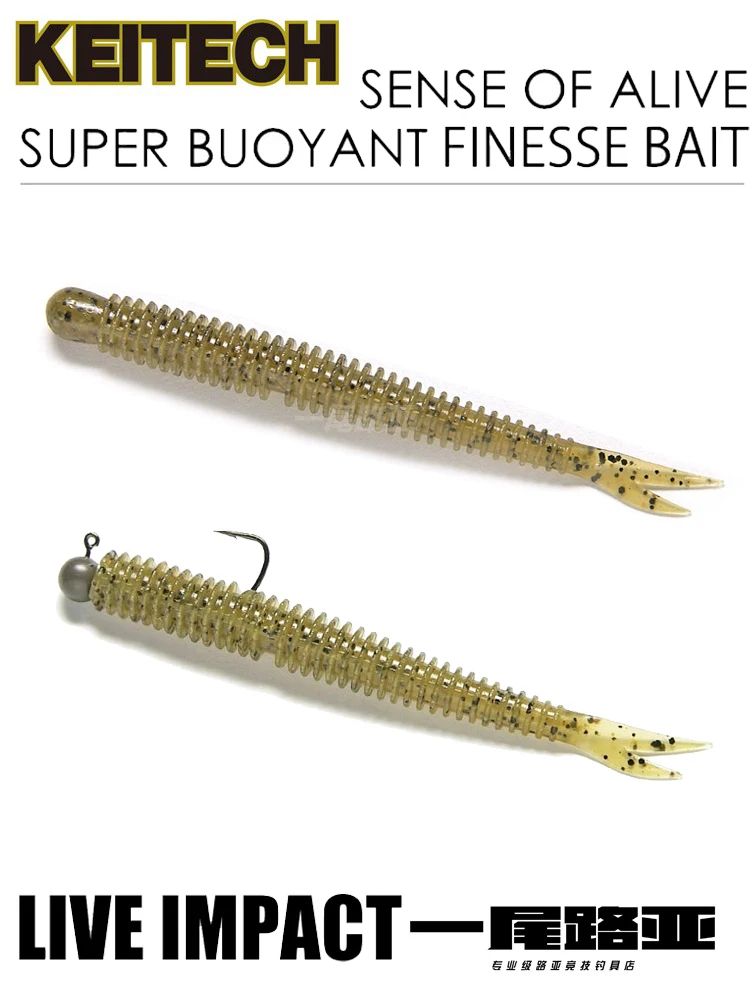 Japón KEITECH hilo flotante horquilla cola señuelo fideos insecto cebo suave grupo de pesca fina alerón fluctuación negro Pit