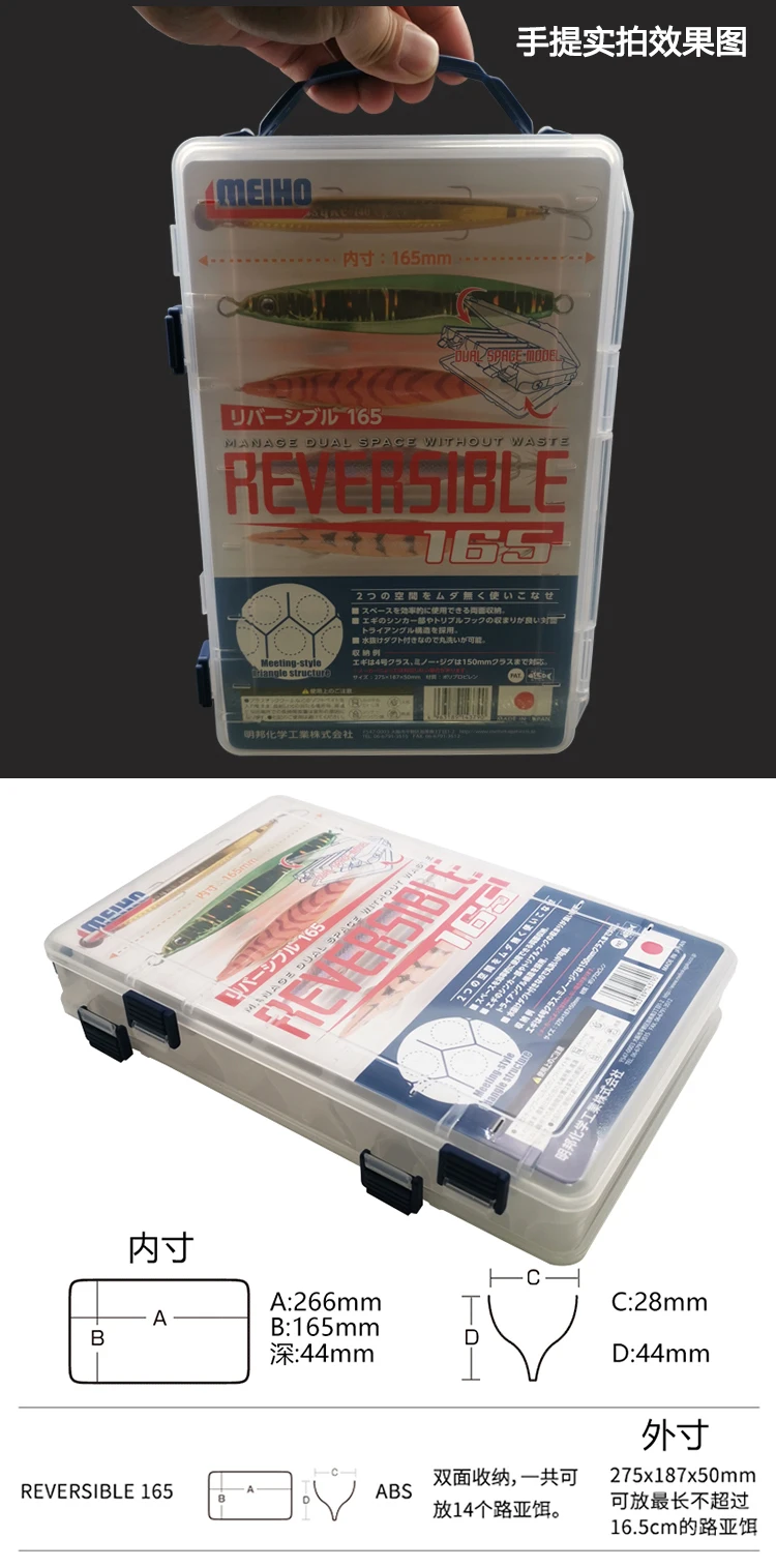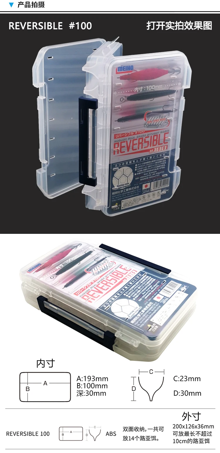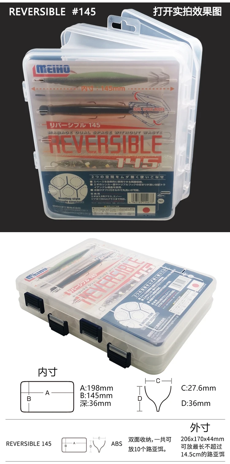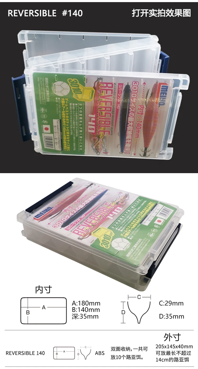 Mi estuche preferido, tengo un total de 5, el porta señuelos japonés MEIHO modelo Reversible 160 de doble espacio, cuyas medidas son 206x170x44 mm, llegó en buen estado, excelentes condiciones y en el tiempo prometido. Muchas gracias!