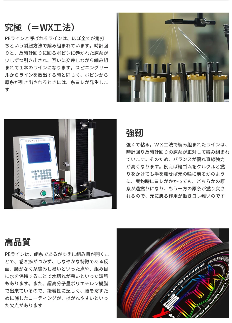 R1: La resistencia a la abrasión, la rectitud, la sensibilidad y la resistencia se han mejorado utilizando el método de ensamblaje WX, que es una tecnología única que promete una estabilidad y resistencia abrumadoras, y aplicando el procesamiento HST al encordado a una alta tensión y un paso de alta densidad.