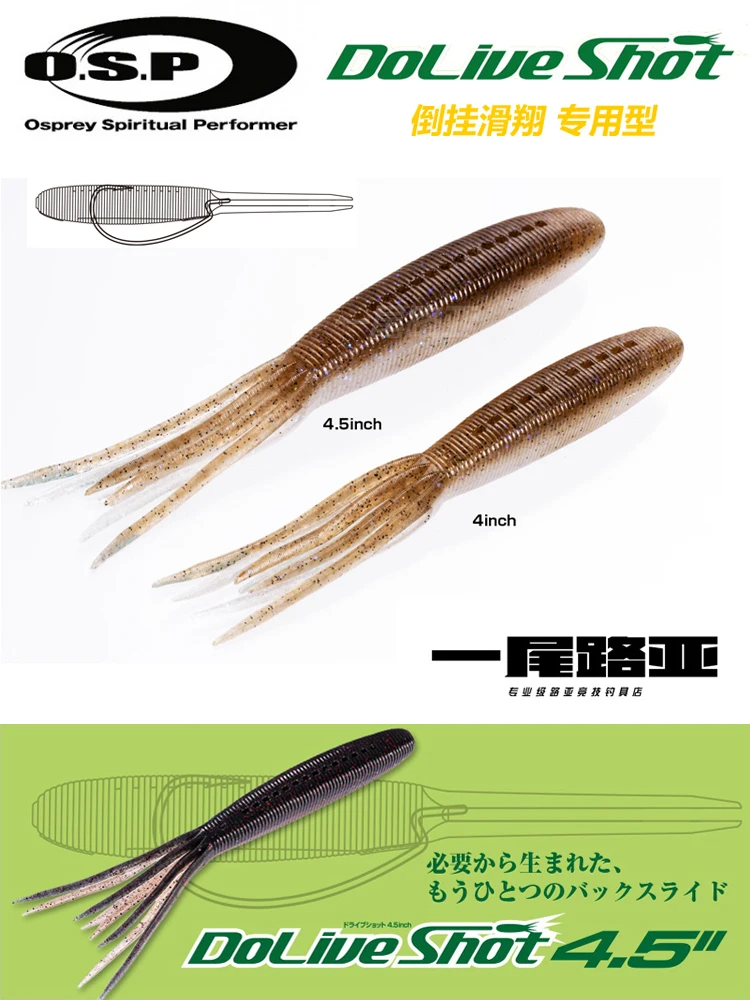 Japón O.S.P OSP importado Doliveshot señuelo deslizante al revés cebo suave sin plomo cabeza vegetal de gravedad específica alta