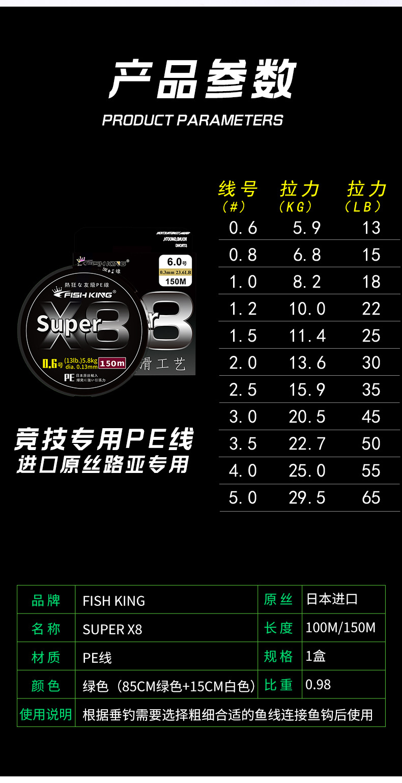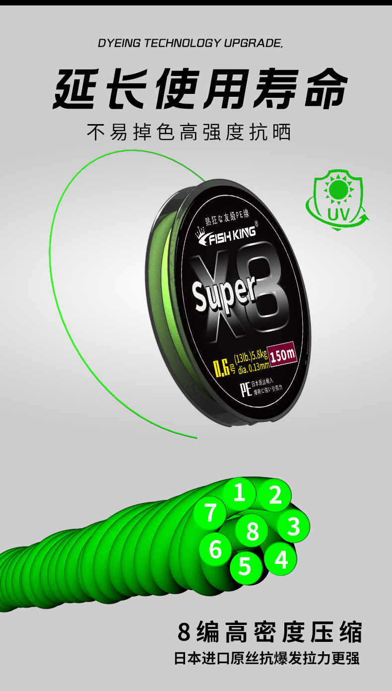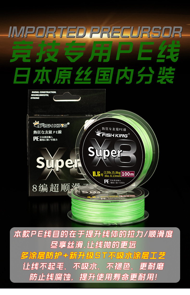 Japón PE X8 verde hundimiento tipo 13LB-65LB PE línea señuelo alambre de alta resistencia trenzado línea de pesca para lubina carrete de pesca de carpa