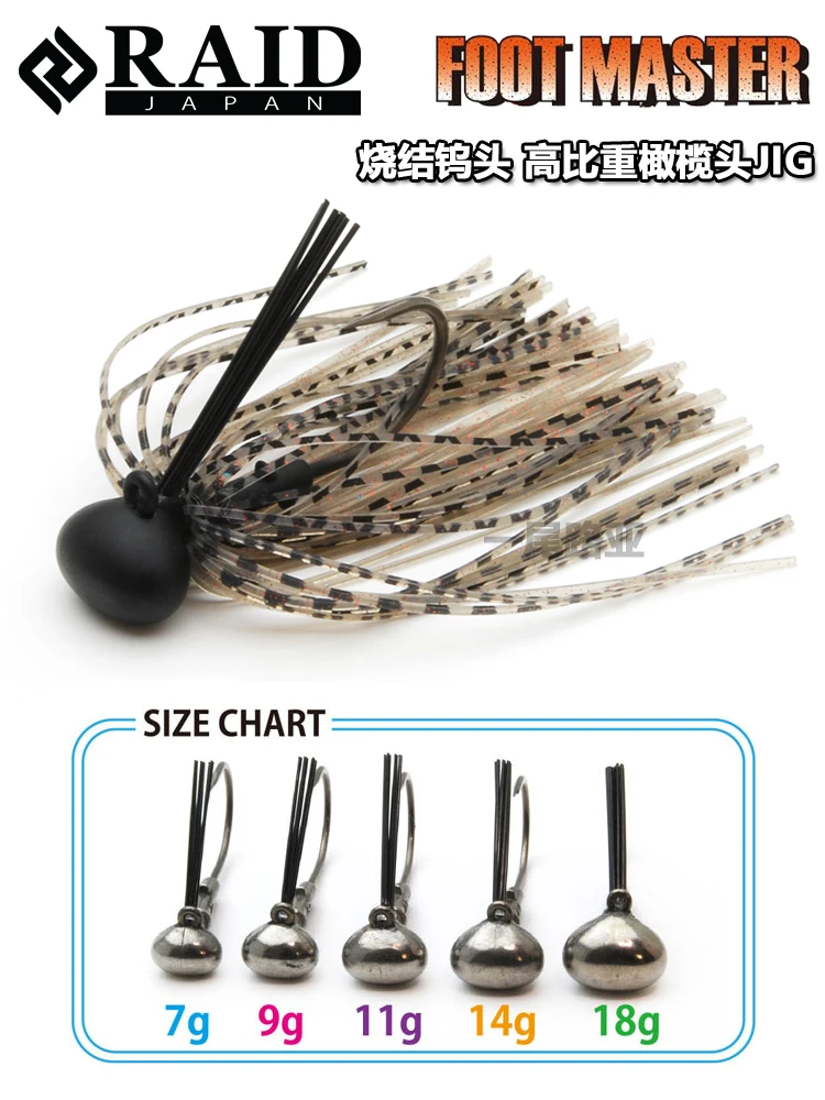 Japón RAID Olive Head JIG señuelo pie MASTER Ultra-alta densidad cabeza de acero de tungsteno falda de goma JIG alta sensibilidad