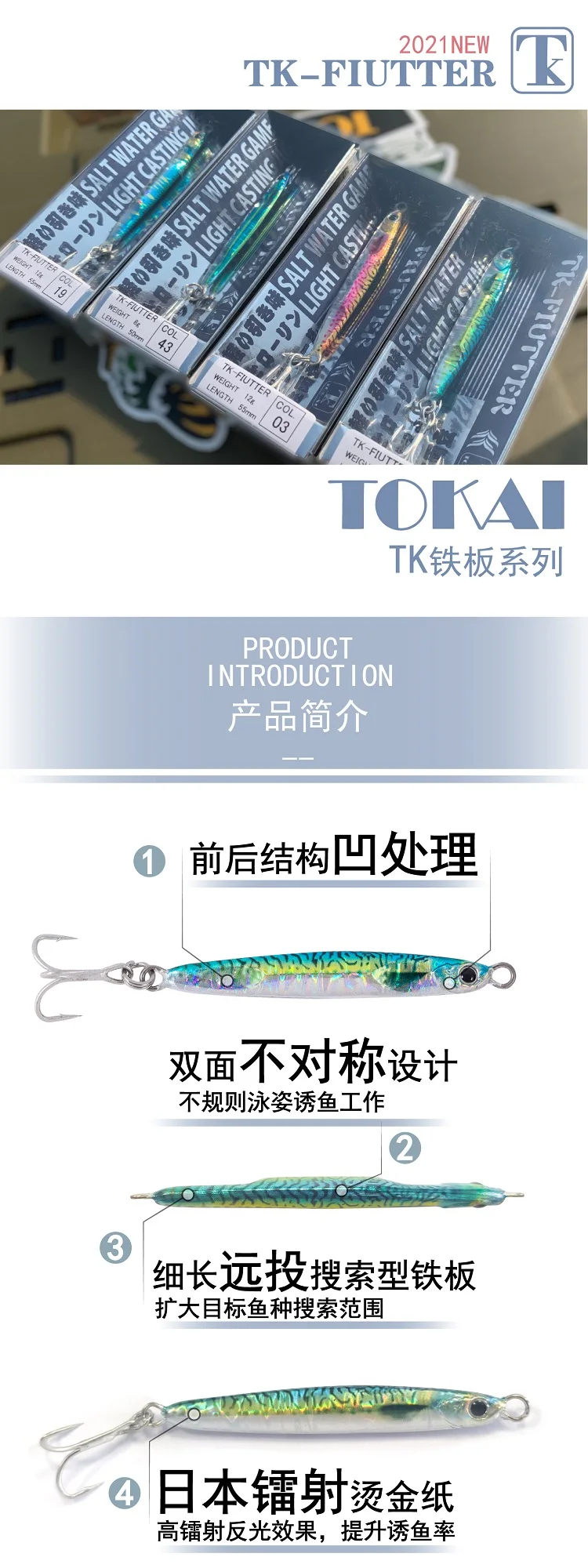 Japón TK FIUTTER Placa de hierro fundido de largo alcance, recubrimiento de simulación, percha cruzada, cebo de pescado mandarín, 8g, 10g, 14g