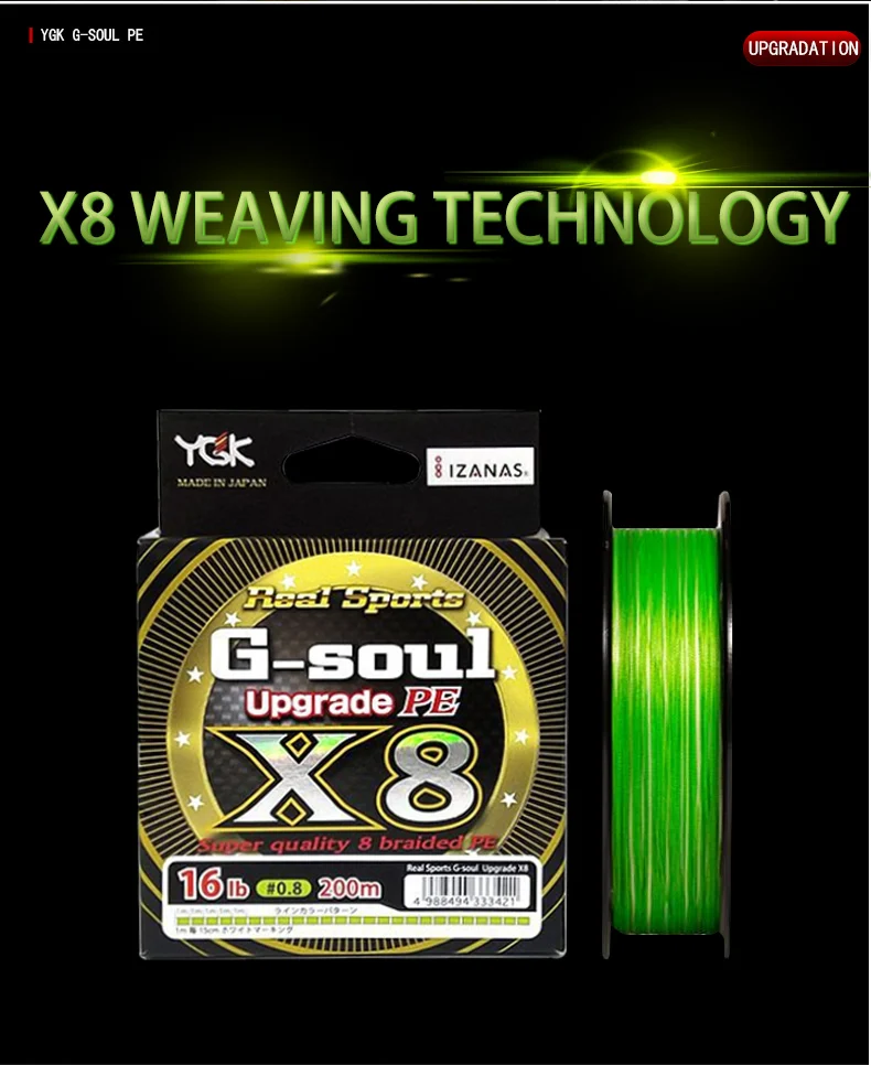 Japón YGK G-SOUL X8 línea de pesca trenzada mejorada súper fuerte 8 hebras multifilamento PE línea 150M 200M 14LB 16LB 22LB 60LB
