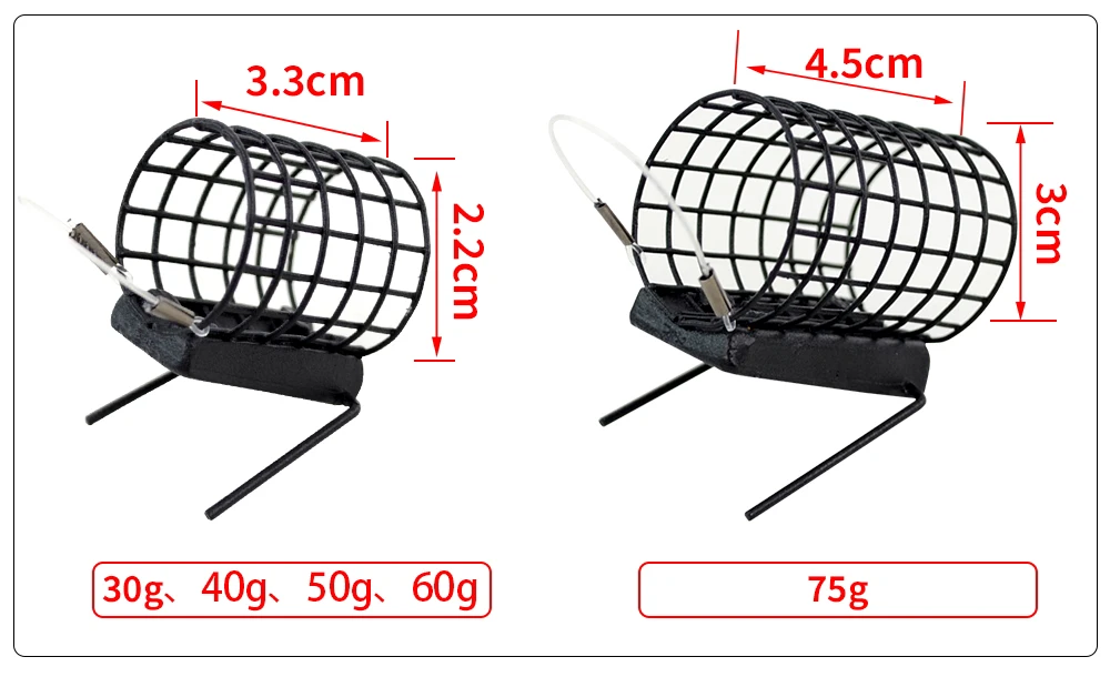Jaula de alimentador de pesca de carpa, accesorios de aparejos de pesca redondos, alimentadores de Metal Barbel de fósforo grueso, 30g, 40g, 50g, 60g, 75g, 10 piezas