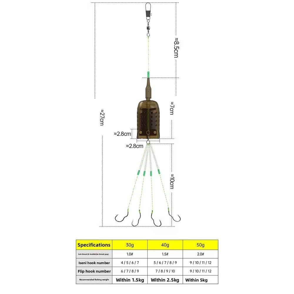 -Innovative Flydeer Fishing Design: Specialized bait cage for Flydeer fishing. Works great in complex environments like mountain reservoirs, slopes, and flowing water. Can be used with floating beads for better attraction.