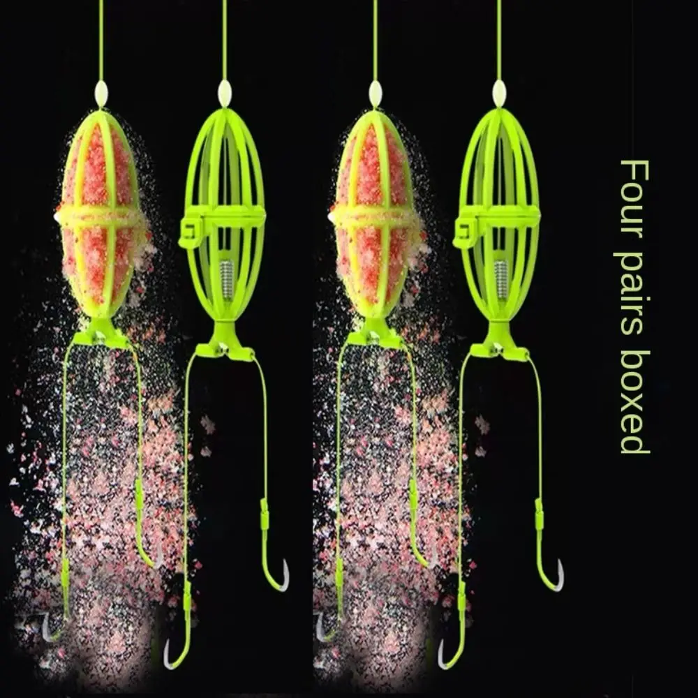 Tipo: anzuelo de exploración. Material: anzuelo de pesca con alto contenido de carbono. Longitud: 25cm (9,84 pulgadas). Color: verde. Embalaje: 4 unidades/caja. Características del anzuelo de exploración: 1. Los anzuelos de bomba generalmente usan comida de mala calidad como cebo. El cebo es tan pequeño como una nuez y tan grande como un puño. Tanto cebo entra en el agua, el área de dispersión es grande, el olor es muy lejano y el poder de pesca es muy fuerte. 2. Hay muchos ganchos en el gancho de la bomba. Cuando el pez está chupando el cebo, es muy fácil inhalar los anzuelos enterrados en la pila de cebo, y la tasa de anzuelos es alta. 3. Mientras un anzuelo esté enganchado en la boca del pez, el pez está luchando y lanzando, y otros anzuelos pueden penetrar fácilmente en otras partes del cuerpo del pez, dificultando el escape de los peces. En la práctica de pesca, a menudo se puede ver que hay varios anzuelos colgando de un pez. 4. Debido a la gran cantidad de anzuelos y al gran rango de elevación, el anzuelo de bomba a menudo engancha al pez cercano cuando se mueve rápidamente. El paquete incluye: 4 * jaula de cebo.