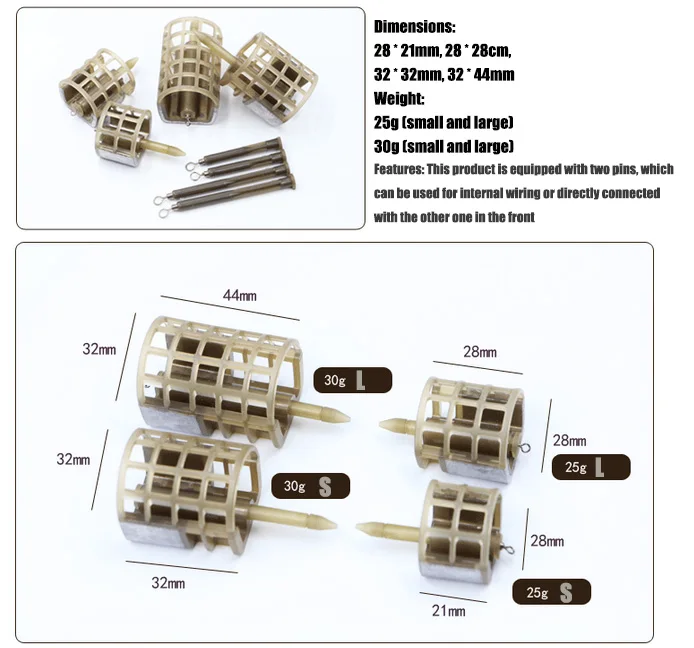 Jaula de cebo para pesca de carpa, alimentador de cebo, soporte de señuelo, trampa, cesta, 25g, 30g