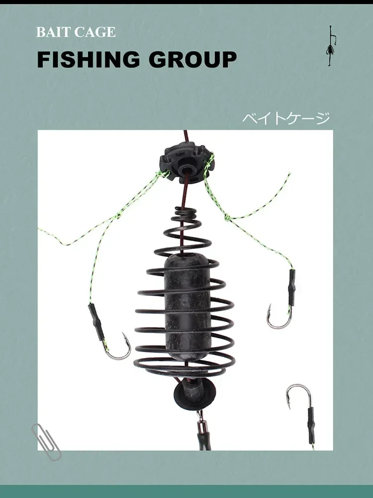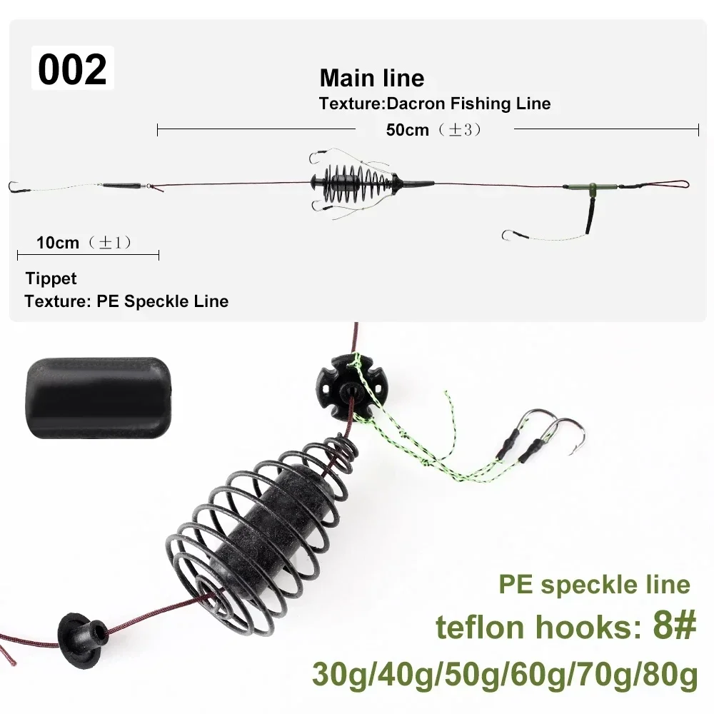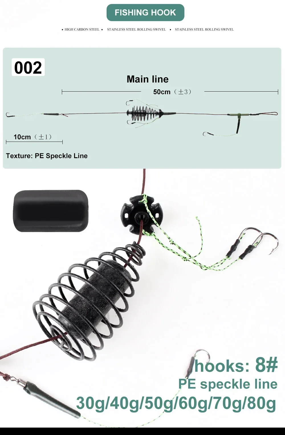 Jaula para cebo de pesca de carpa, alimentador de grupo de línea de 30-80g, anzuelo de púas de acero rico en carbono, alimentador de Metal, accesorios para aparejos de pesca de carpa