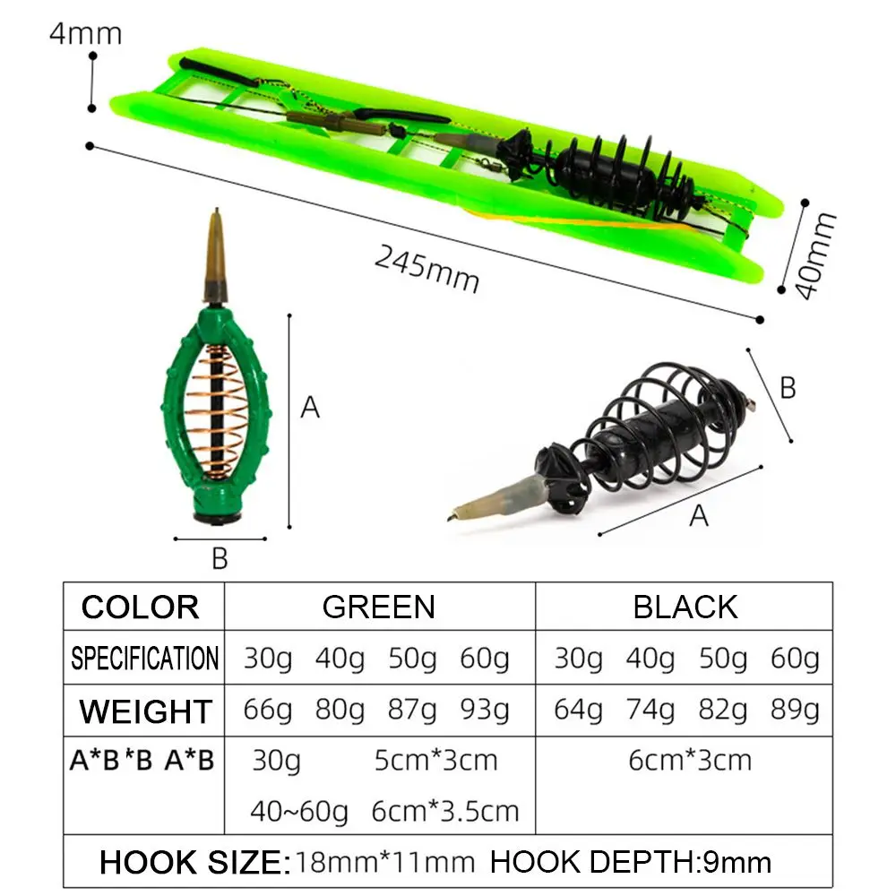 * 100% nuevo y de alta calidad * Hecho de materiales de alta calidad, duradero * La combinación exitosa de metal fuerte, los comederos de pesca ecológicos con anzuelos de pesca afilados y con la trenza de pesca extremadamente fuerte hacen que nuestros productos sean muy confiables. * Nuestros métodos de pesca están probados y dan altos resultados. Esto garantiza un 100% de fuerza y éxito seguro para atrapar carpas grandes y otros peces. * Con los aparejos de pesca hechos a mano (comederos de pesca, aparejos de pesca de pelo, sistemas de aparejo antienredos, flotadores de alimentación de pesca y otros) * Material: acero de alto carbono + plomo + nailon * Color: verde/negro * Tamaño: 30g:5*3cm (como se muestra en la imagen) (aproximadamente) 40 ~ 60g:6*3,5 cm (como se muestra en la imagen) (aproximadamente) * Peso: 30/40/50/60g (aproximadamente) Embalaje incluido: 1 jaula de cebo de pesca