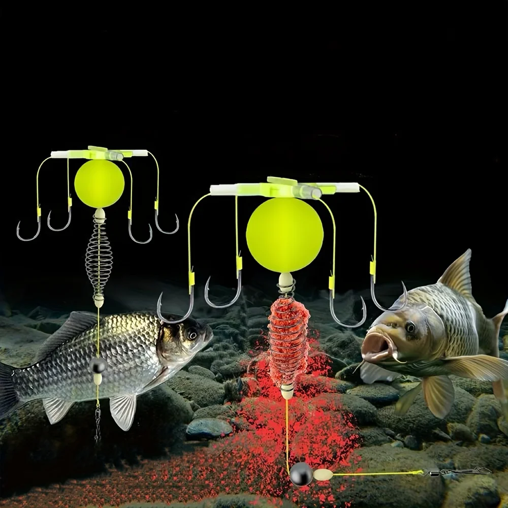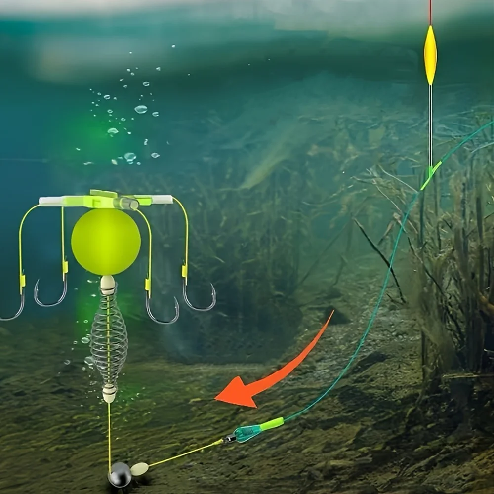 Jaula para cebo de pesca, gancho de cuerda de acero al carbono, juego de pesca, jaula para cebo antienrollado, línea flotante, alimentador de grupo, aparejos de pesca
