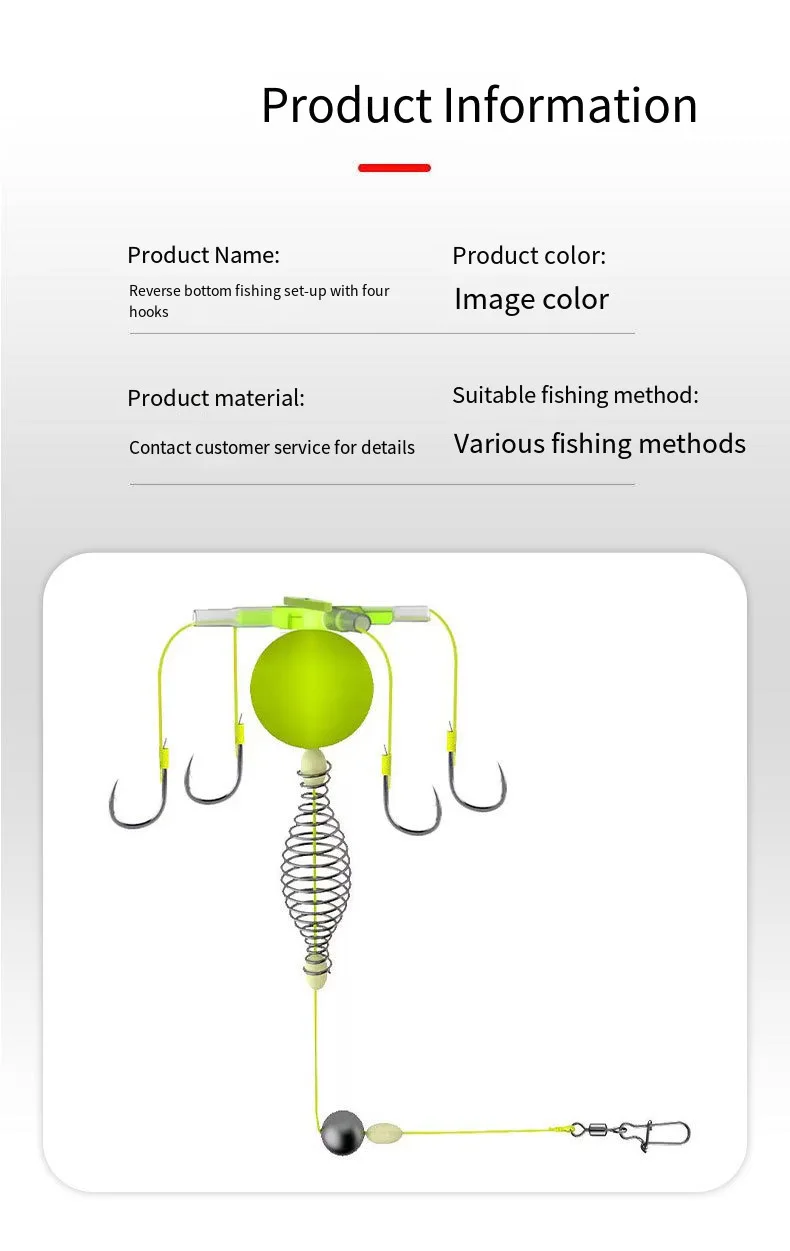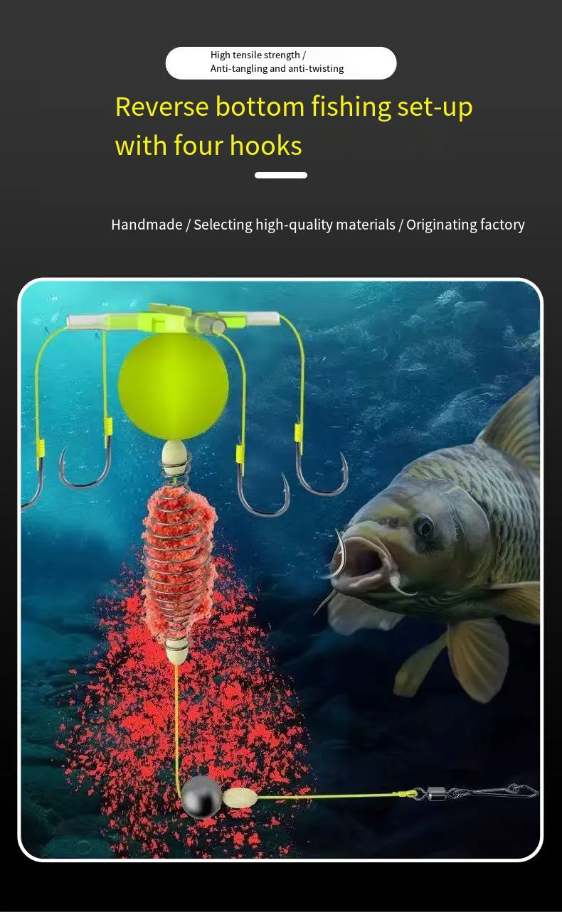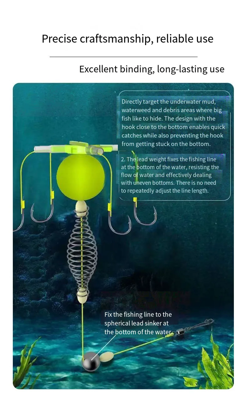 Los pantalones están bien atados, pero cuando se sequen, es mejor mojarlos y ajustarlos. Me dije a mí mismo que si no, el hilo se deshilacharía y se desenrollaría. Reemplace inmediatamente el mosquetón por uno de calidad, ya que el barato es débil. Coge los anzuelos de inmediato, 7-8 para carpas y 9-10 o más para carpas crucianas. Porque el 5 está buscando peces pequeños (solo para camarones pequeños o peces pequeños de hasta 100 gramos más o menos). En tercer lugar, generalmente no vale la pena en absoluto si! Equipo interesante. Si tomas varios a la vez, puedes cambiar el tapa con 4 ganchos de inmediato, lo cual es muy práctico. En mi opinión, el flotador es demasiado grande, o si llenas el acuario con mucha plastilina dos o tres veces más de lo necesario, y es brillante, no repelirá a los peces pequeños, pero uno grande podría nadar por debajo (una carpa o un carpa cruciana). . . Aunque sea un pequeño mosquito, si tienes hambre, no importa en absoluto. La instalación es interesante, tiene su propio encanto. Puedes hacer tus propias modificaciones según la imagen, porque las regaderas clásicas se atascan y no muerden.