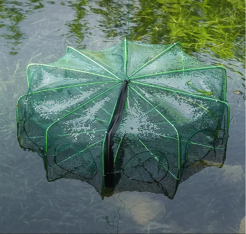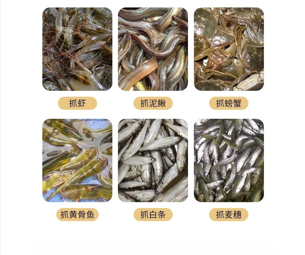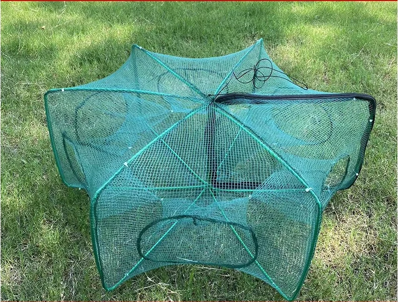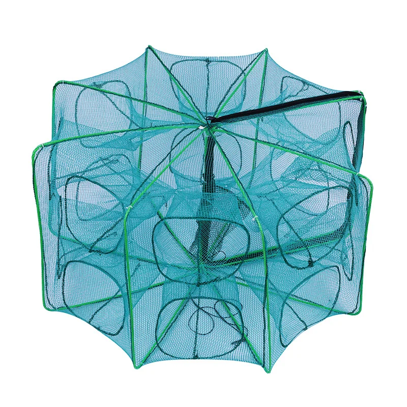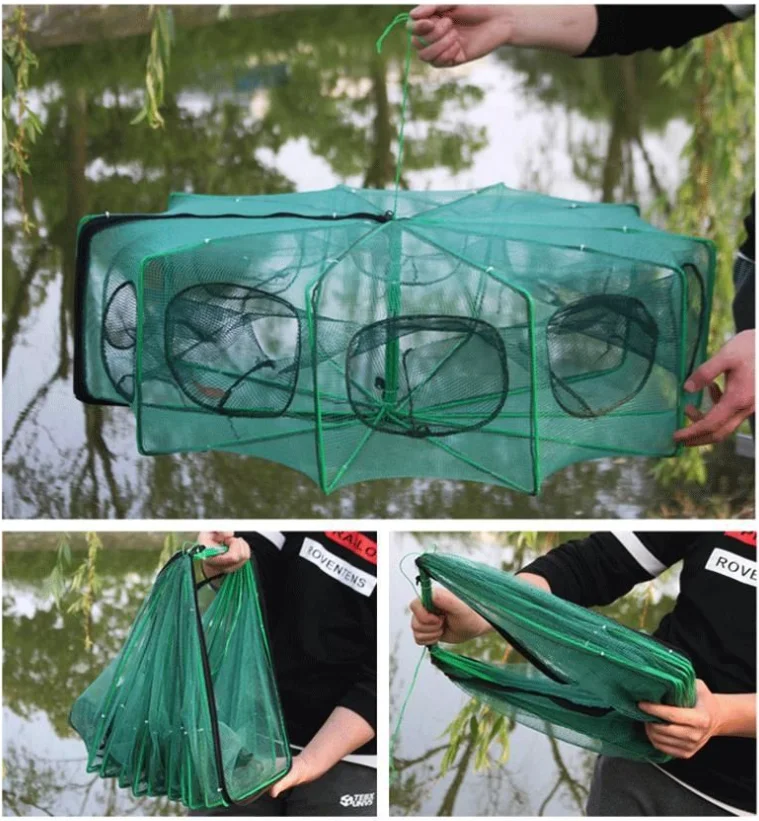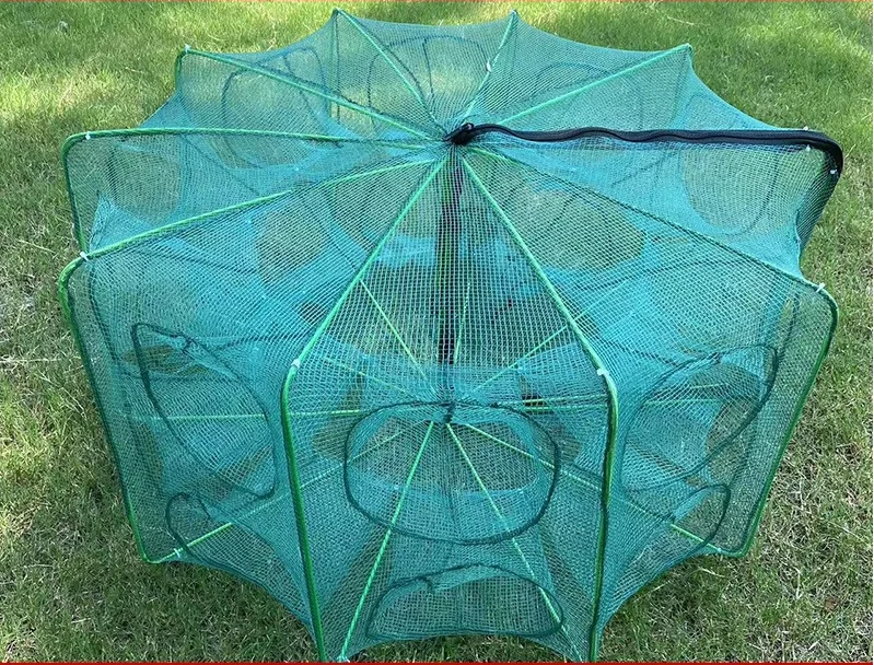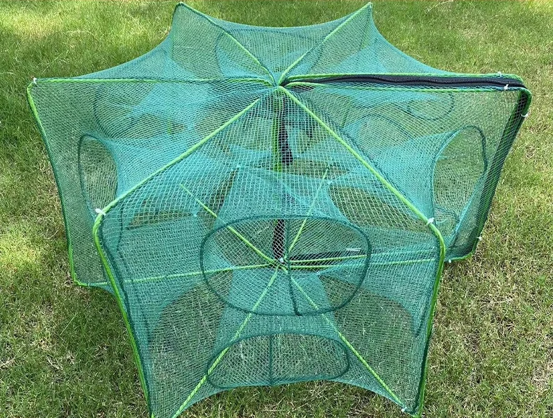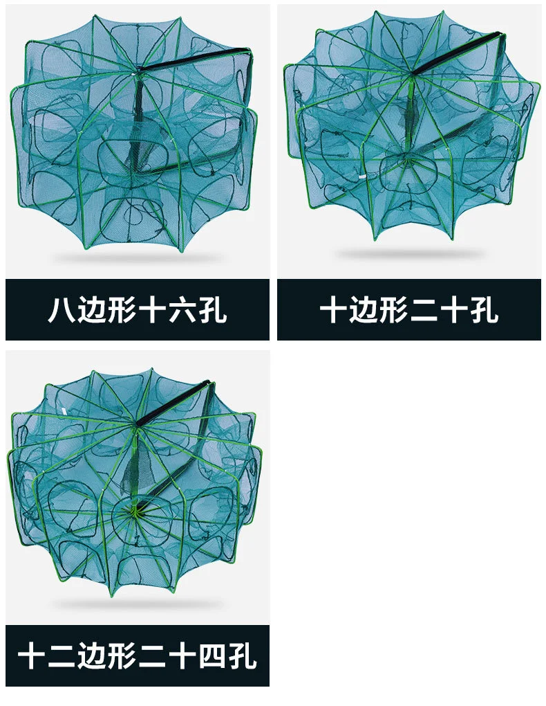 02: Diseño de malla único con grandes importaciones y pequeñas exportaciones, que permite que los peces entren pero sean difíciles de escapar, hay 6 agujeros/8 agujeros/10 agujeros/16 agujeros/20 agujeros/24 agujeros para que usted elija.