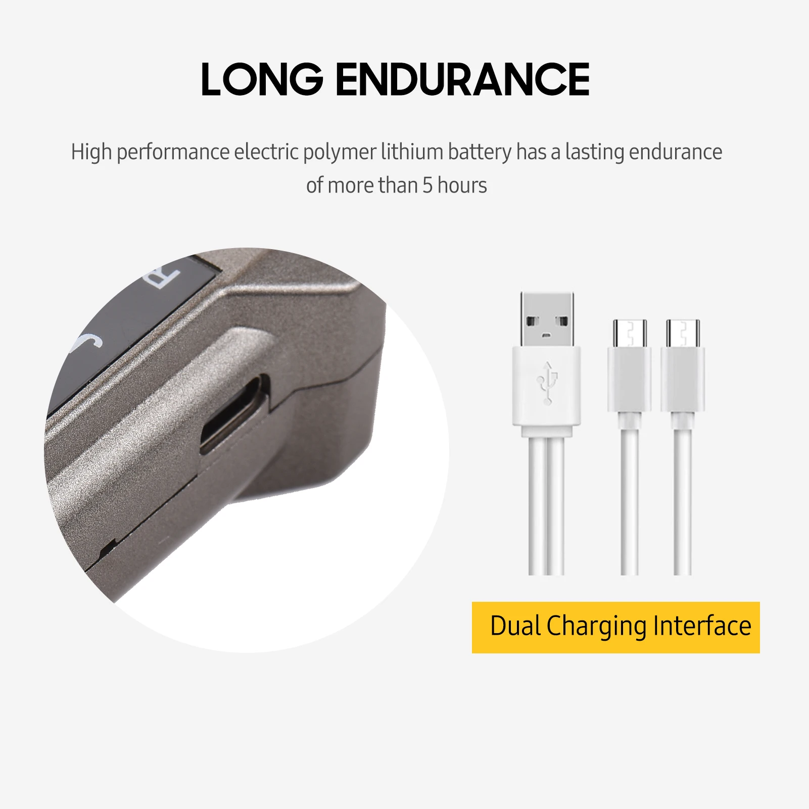 Batería de litio de larga duración de 800mAh incorporada: La batería de polímero de litio eléctrica de alto rendimiento tiene una resistencia duradera de más de 5 horas.