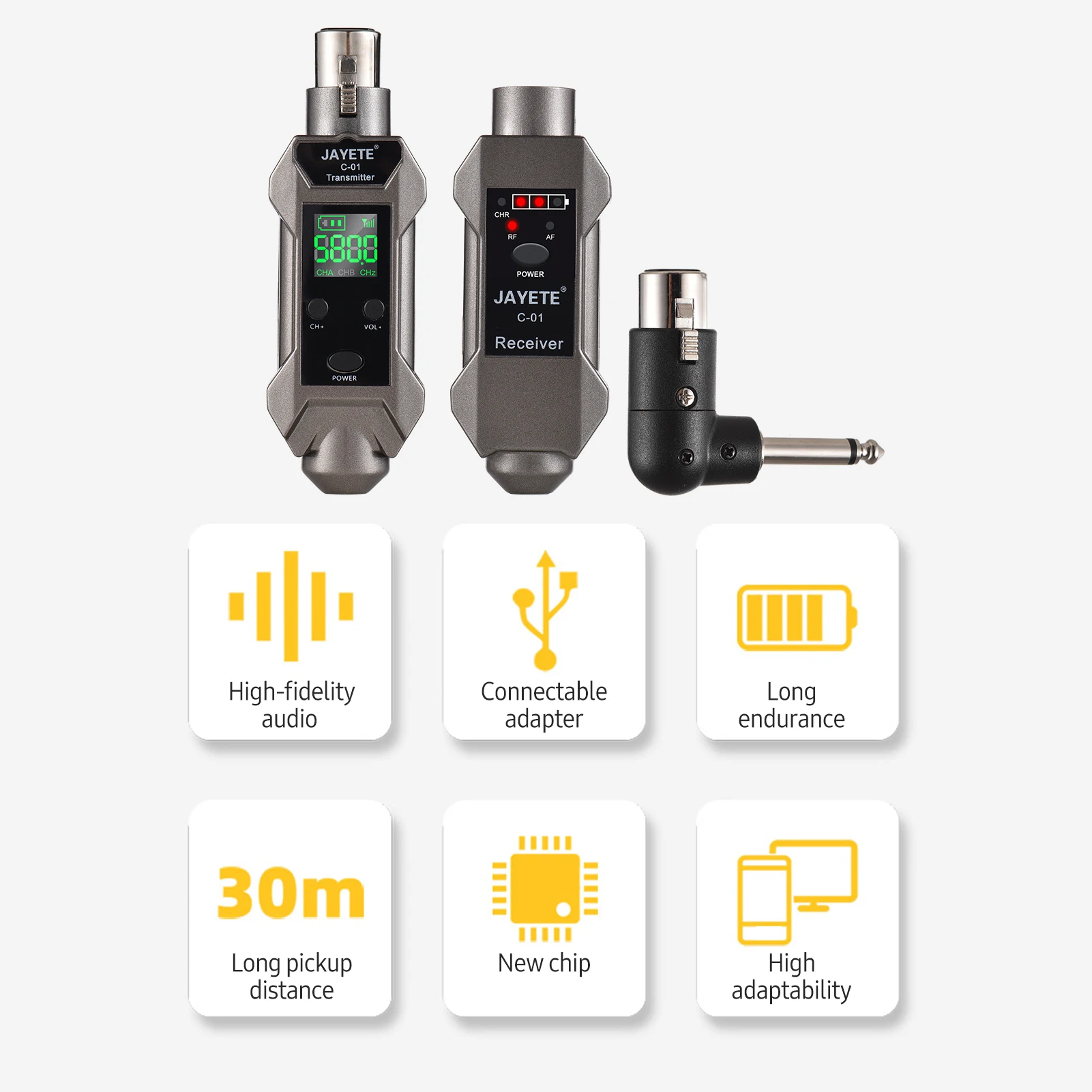 Equipado con un conector XLR a 6,35 para receptor: se puede utilizar en altavoces, mezcladores, amplificadores, guitarras y otros equipos de sonido.