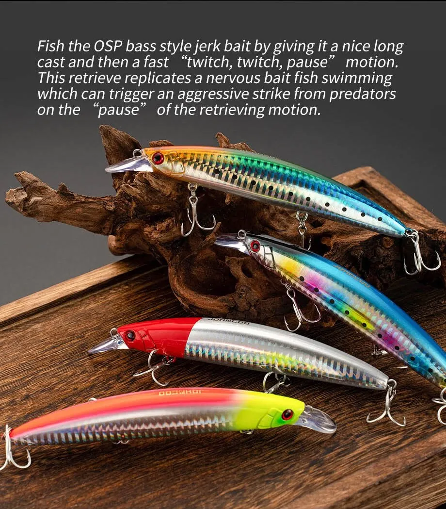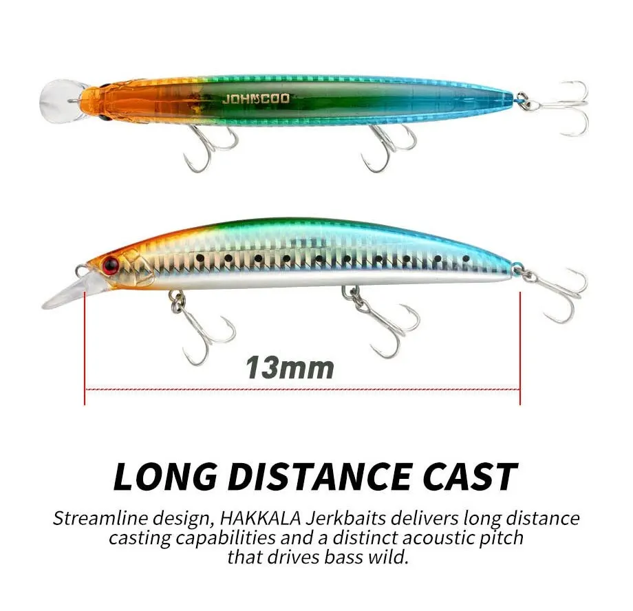 Jerkbait flotante de fundición larga, señuelo de pesca de 130mm, 23g con anzuelos de calidad, Wobbler Minnow para lubina, perca, carpa, Lucio