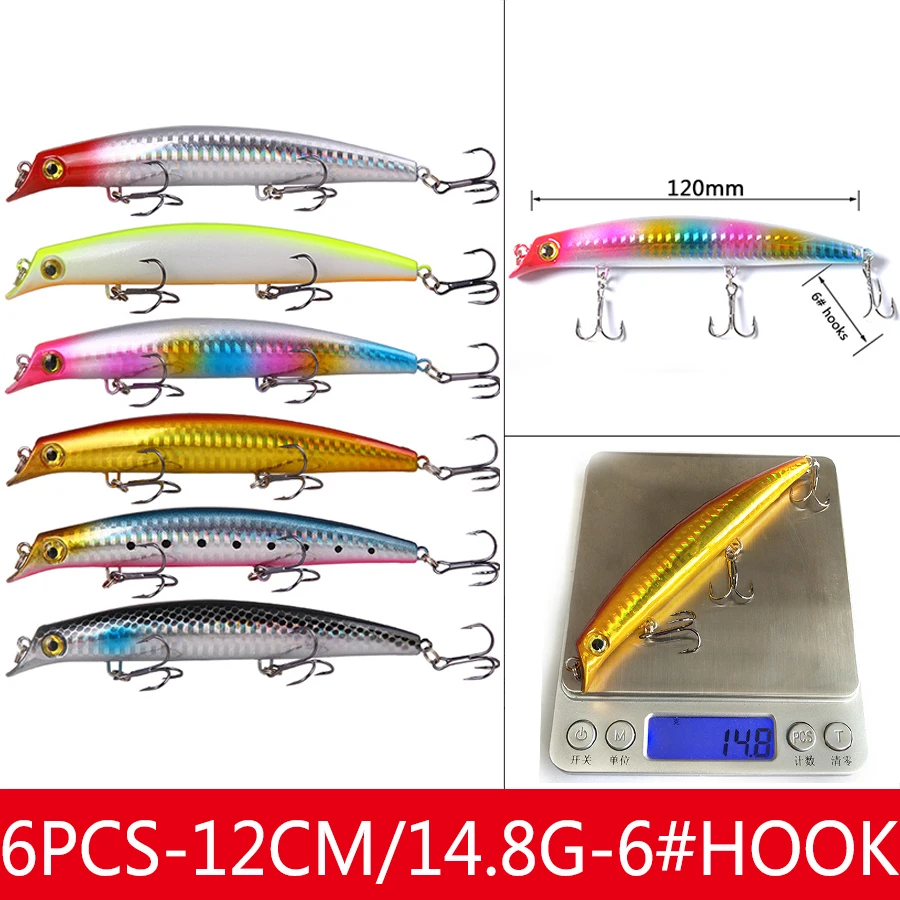 Jerkbait Minnow cebo duro falso Crankbait señuelo de pesca, juego de Wobblers para Lucio, aparejos de curricán, Kit de cebo Artificial, Swimbait Sea