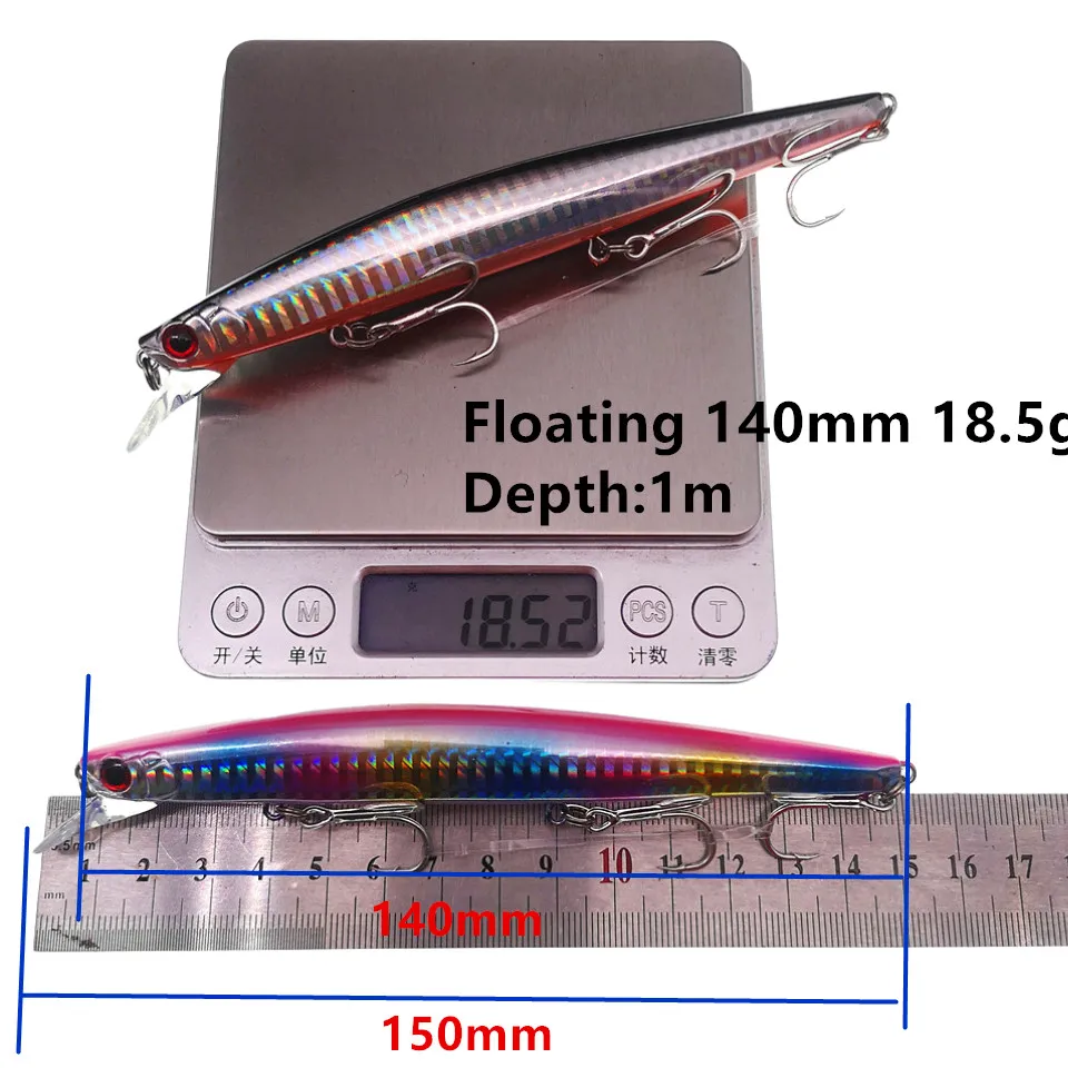 Jerkbait Wobblers 14cm 18,5g profundidad 1m cebo duro Minnow aparejos cebo de pesca Señuelos de Pesca Sistema de Transferencia de peso para fundición larga