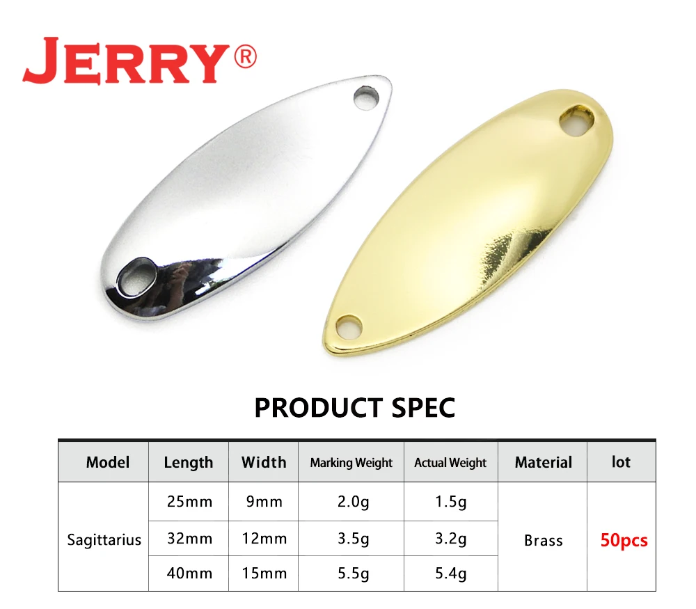 Jerry 50 Uds 2g 3,5g 5,5g cebo duro sin pintar latón en blanco área de lago cucharas para trucha parpadeantes adornos Spinner cebo Pesca