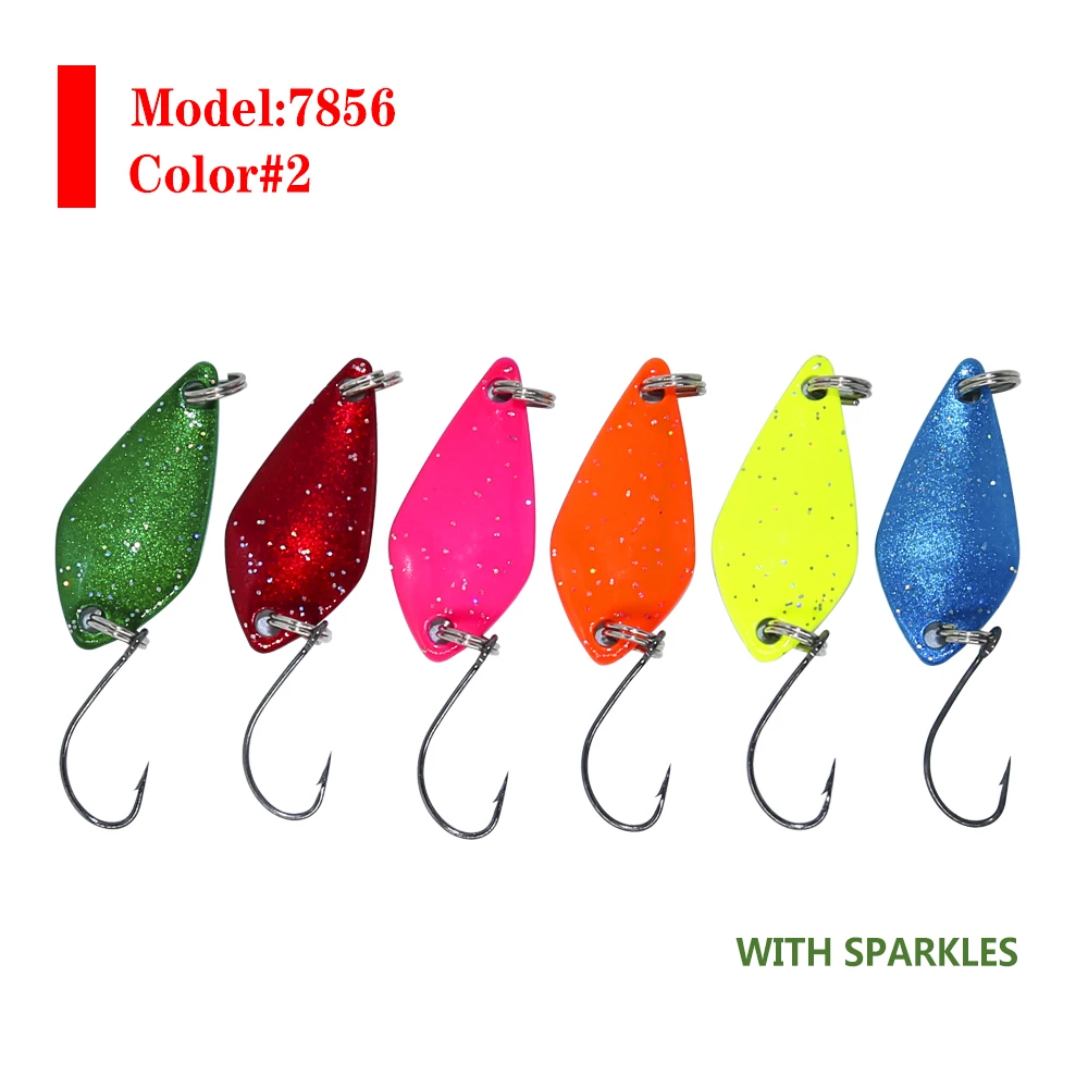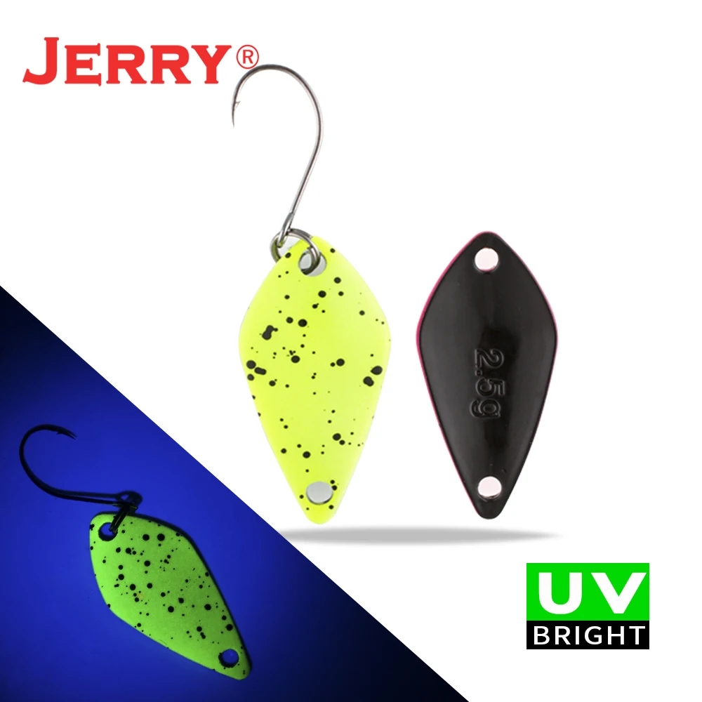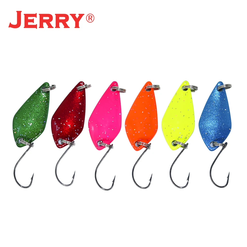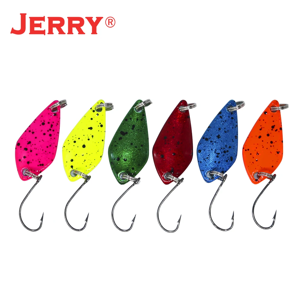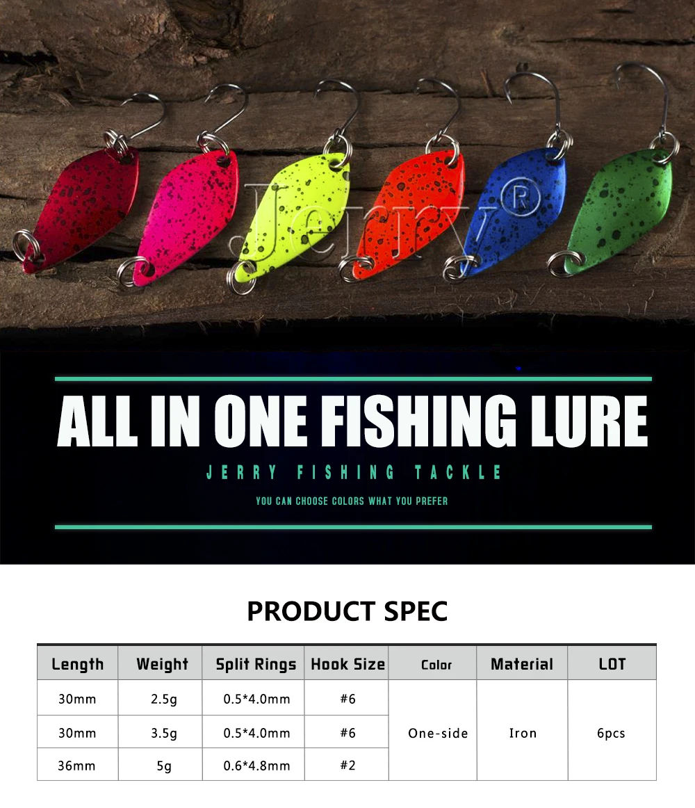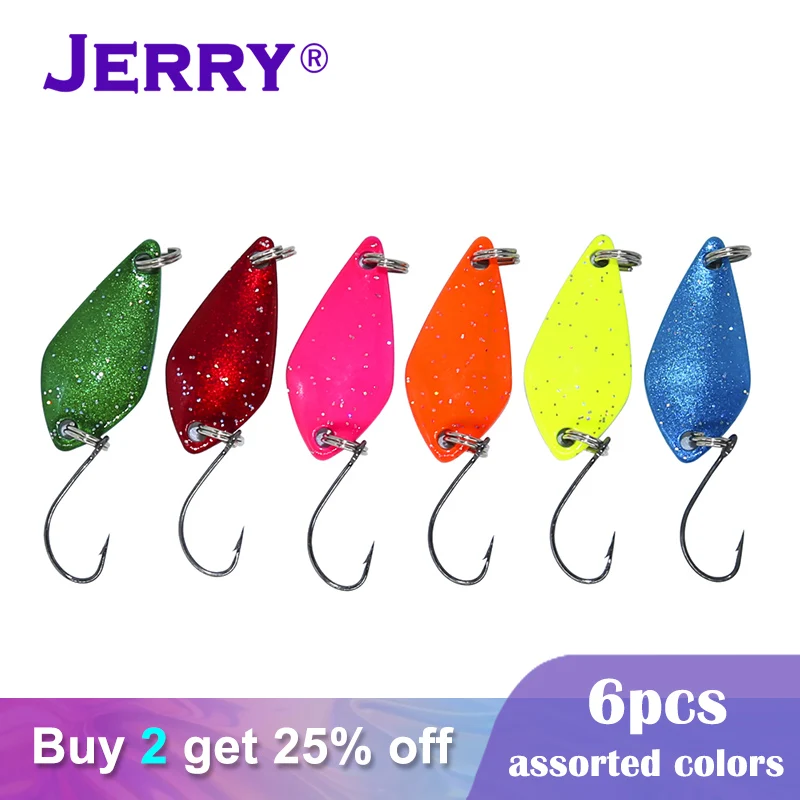 Jerry 6 uds 2,5g/3,5g/5g fundición Pesca Color UV Micro área cebo para trucha Kit de cuchara de Pesca señuelos de Metal adornos al por mayor