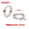 Anillos divididos de pesca de acero inoxidable Jerry, cebo duro, anillo plano, conector, cuchara, señuelo, doble bucle, 100, accesorios de pesca, aparejos de pesca de piezas