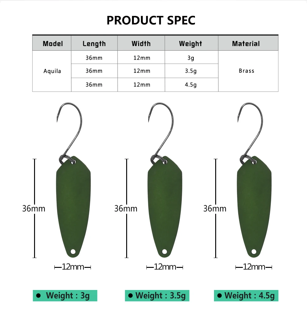*Estas cucharas de hoja delgada han brindado excelentes capturas de trucha, perca, lucio y lucioperca para muchos pescadores.Estas cucharas son ideales para cualquier situación y están pintadas con los colores, patrones y estilos más populares de hoy.