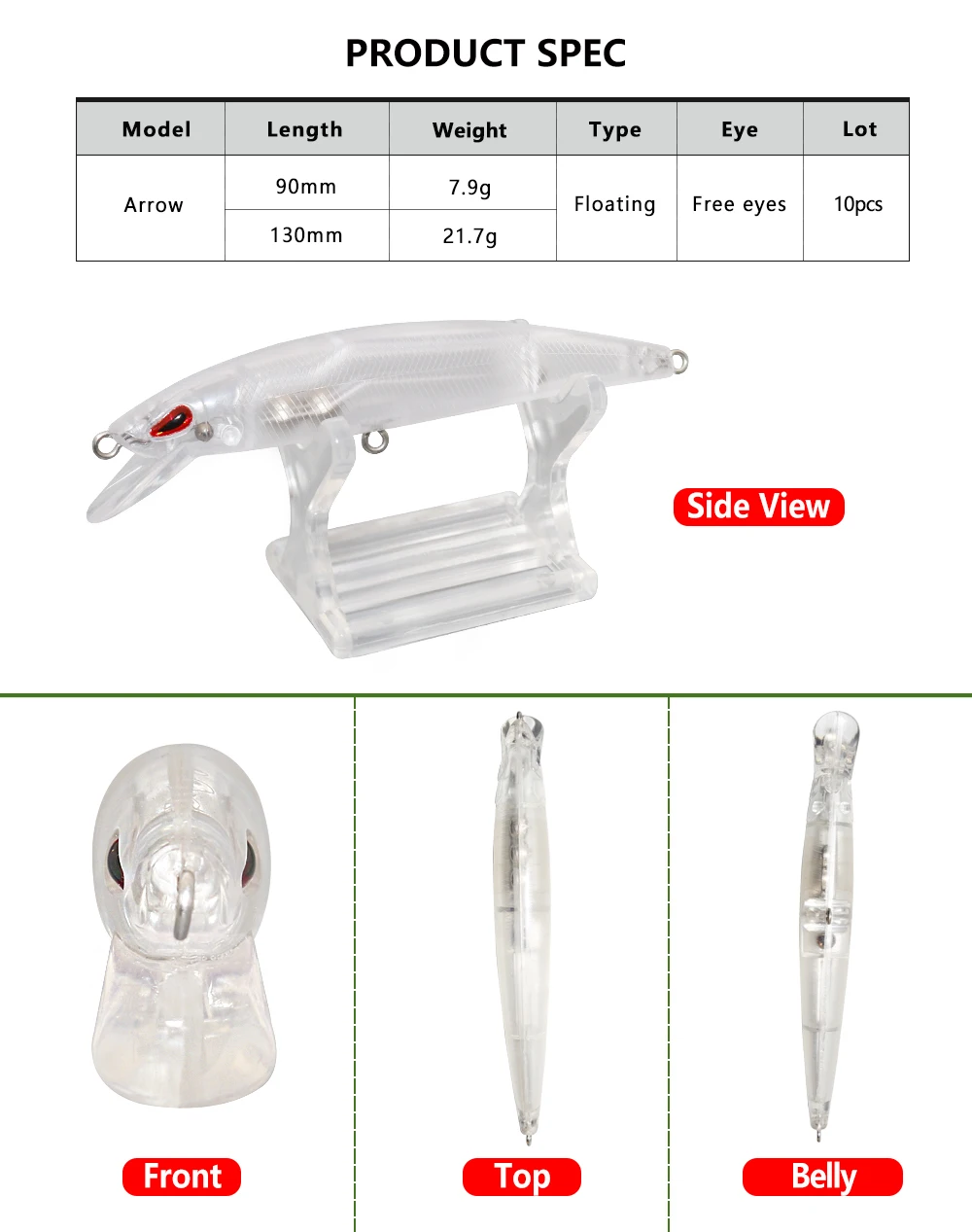 Jerry ARROW, cuerpo en blanco, señuelo de pesca sin pintar, agua dulce, agua salada, Minnow, cebos de manivela, 10 Uds., aparejos de plástico flotantes DIY