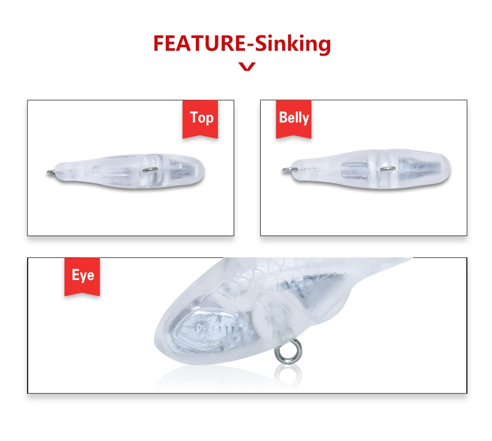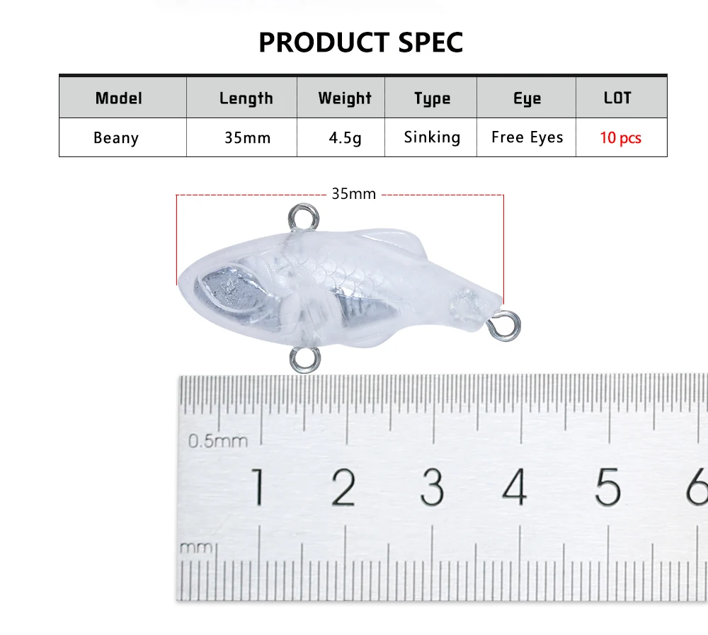 Jerry Beany-señuelo de pesca de 35mm, cebo duro sin pintar, en blanco, señuelo de hundimiento VIB