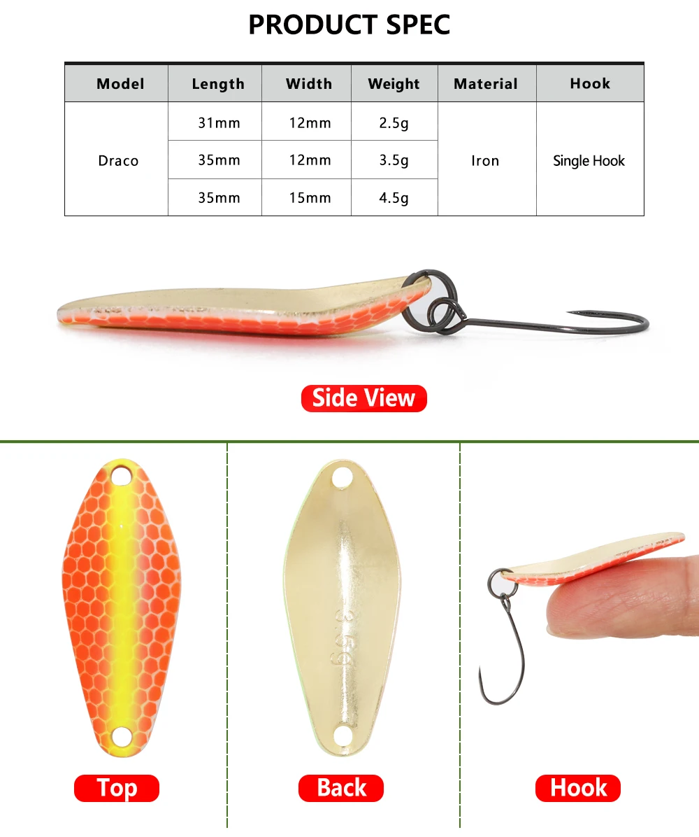 Jerry Draco micro fishing spoon trout lures UL UV colors ultralight fishing tackle freshwater artificial bait