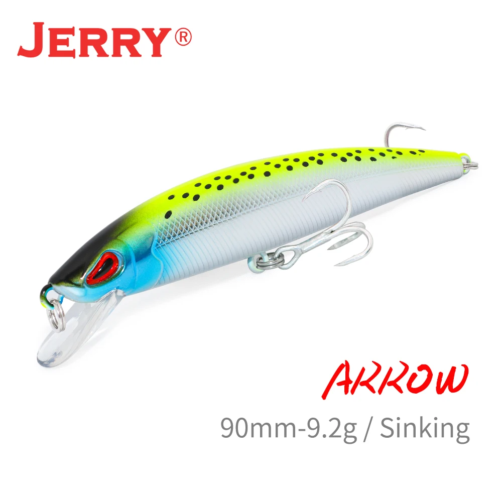 Jerry Arrow hundimiento Minnow señuelo de pesca agua dulce cebos de agua salada para lubina 9cm Color UV traqueteo cebos duros