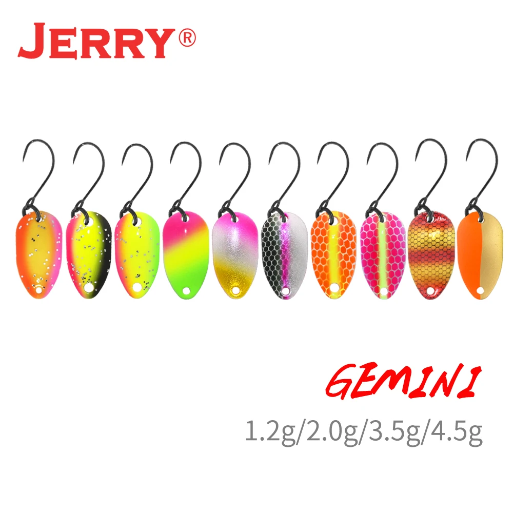 Jerry GEMINI-Micro cuchara de pesca giratoria, Kit de señuelos de perca de trucha de latón, pequeños Spinners de peso ligero, colores UV
